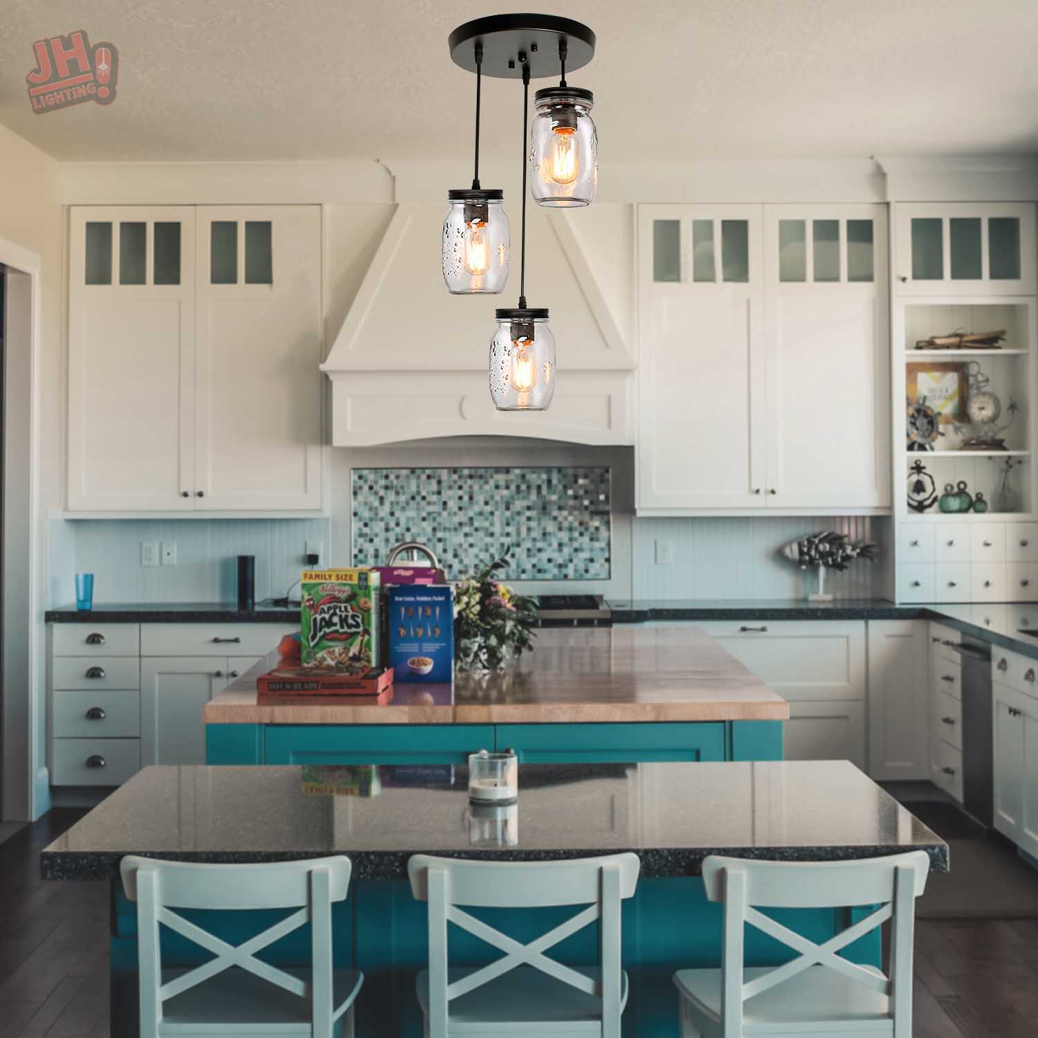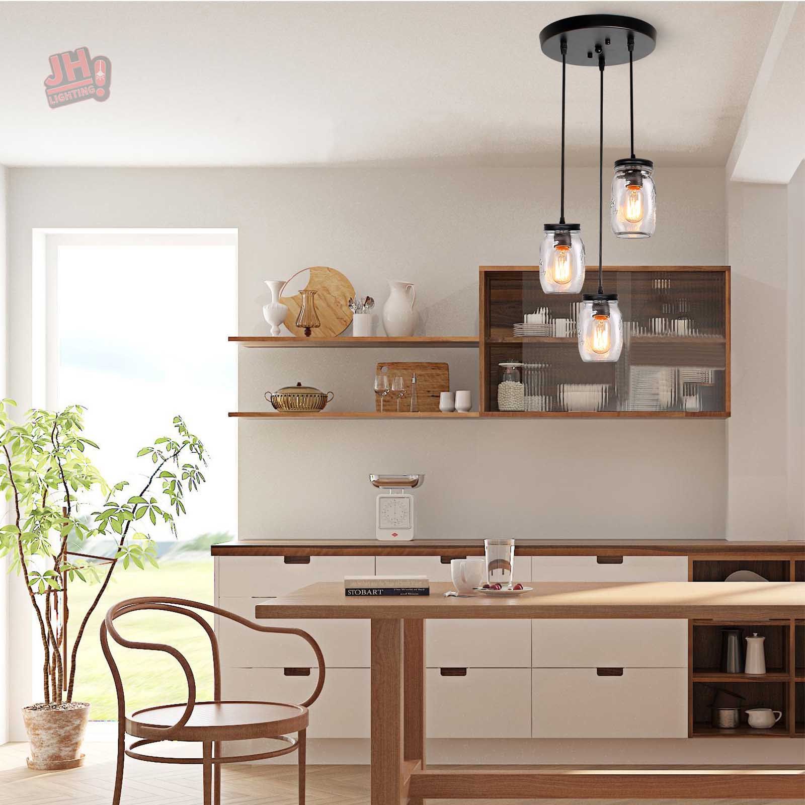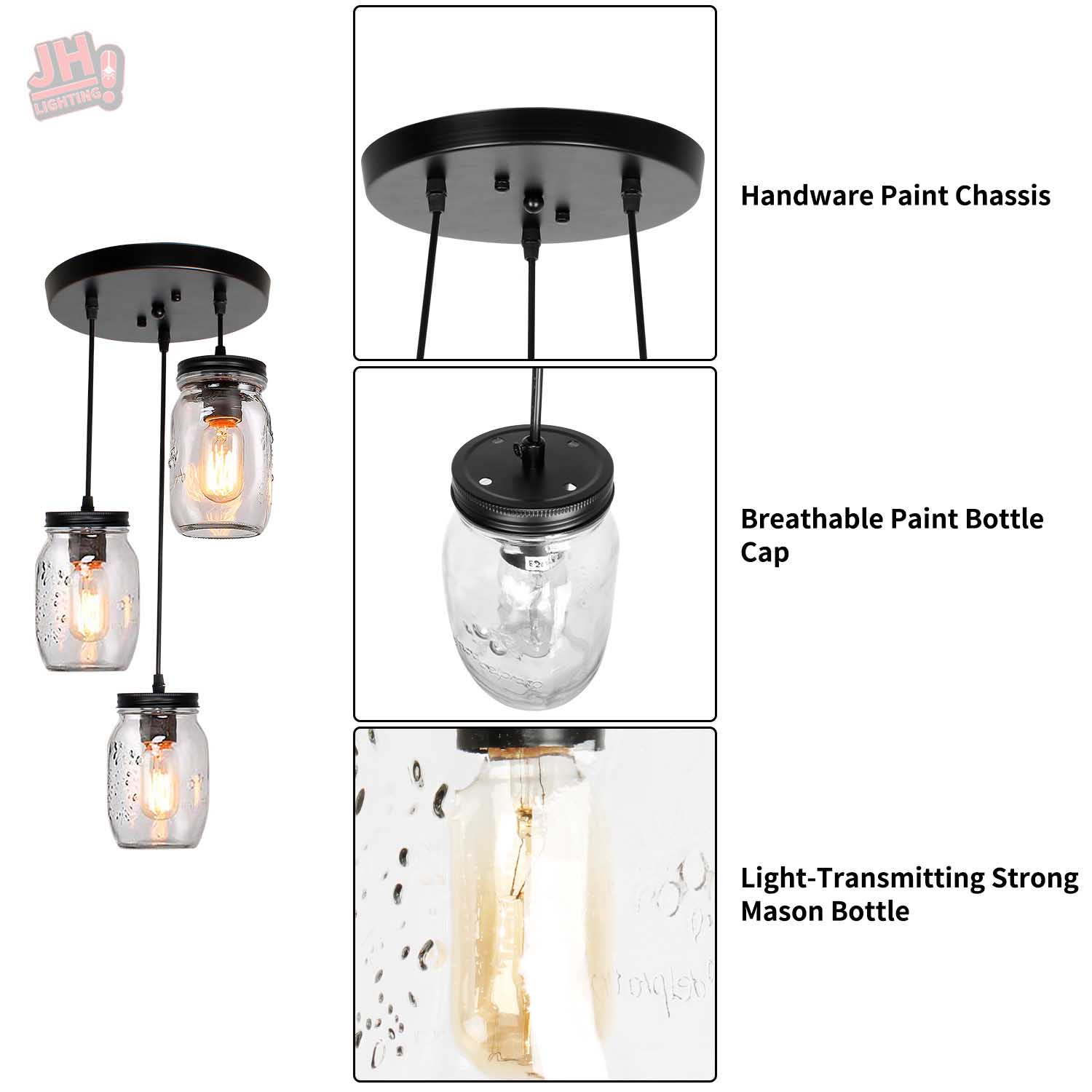 👉【Easy to Install 】 - Includes all mounting hardware for quick and easy installation. Featuring a solid round Metal canopy which holds 3 clear bottle-inspired glass shades, attached by 3 power cords, this 3-light pendant matches your space whether it is transitional, industrial, modern, or farmhouse style! It is to fill your space with lights and joy!