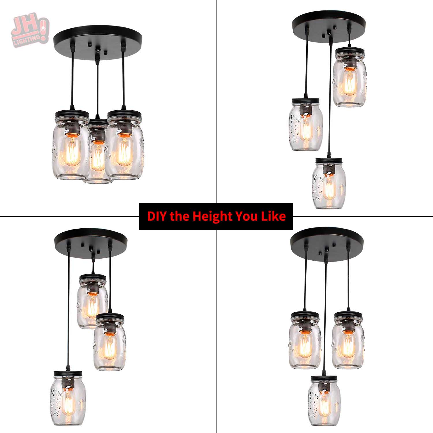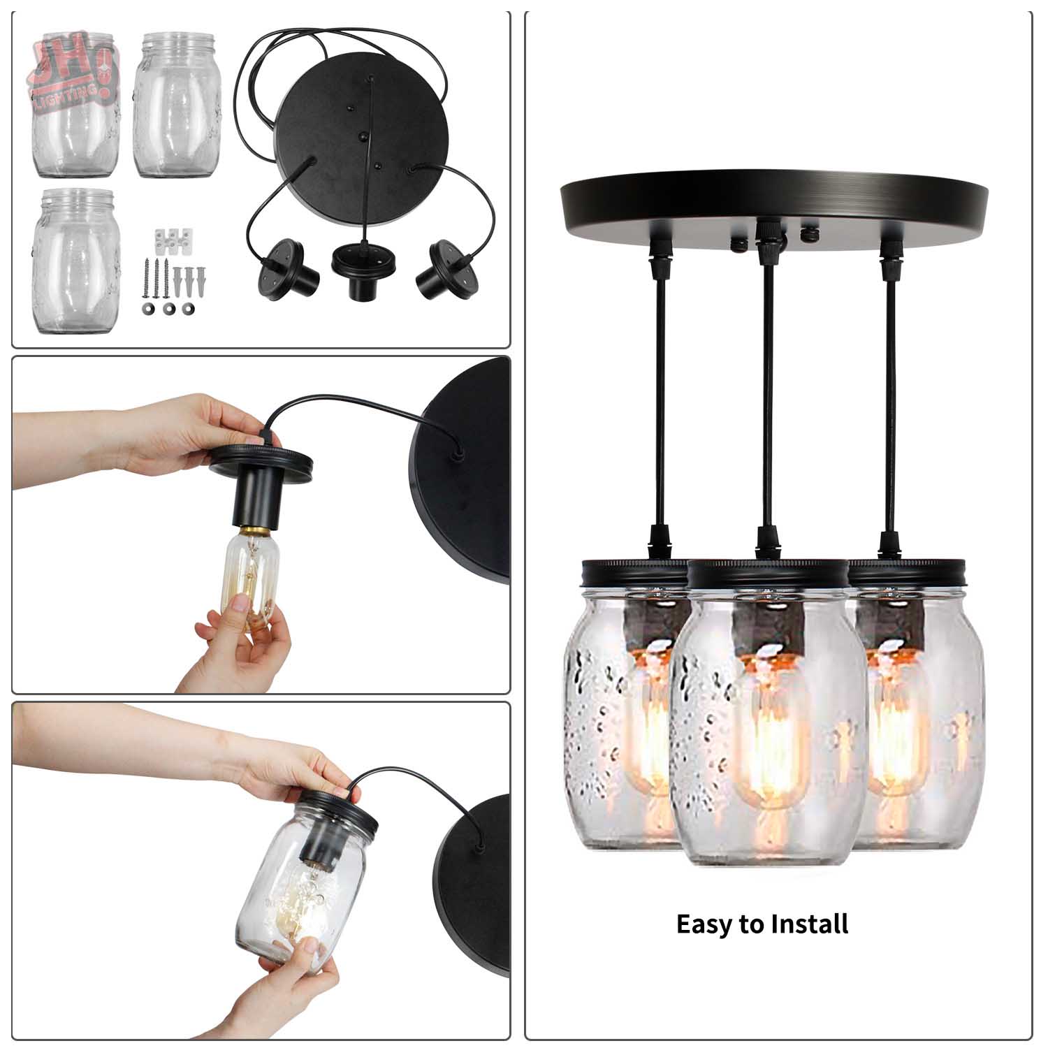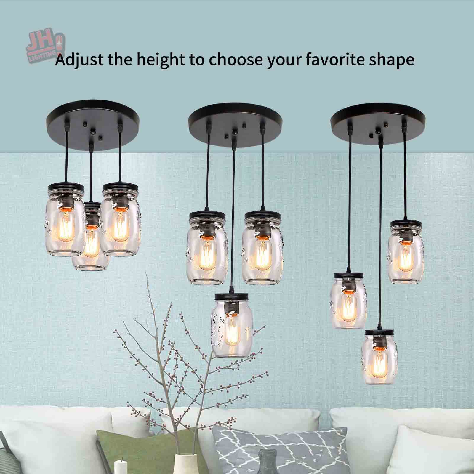 👉【Material & Dimensions】 - Our glass mason jar pendant lights were made of glass and metal. Round Canopy: 9. 84” diameter, Light Fixture: 3. 9” Width x 6. 7” Height. Adjustable Cord length: 0-39.37”.