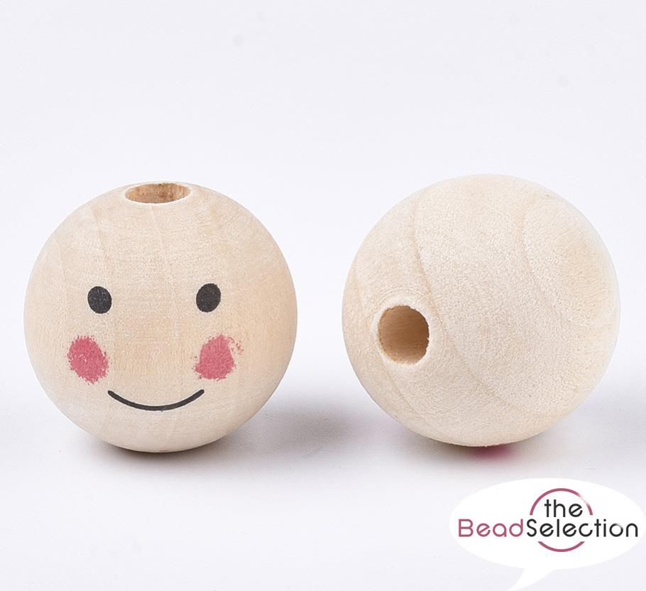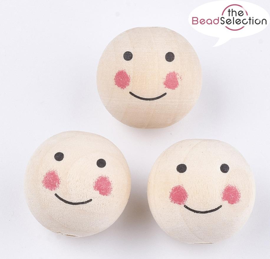 10 LARGE DOLLS HEAD HAPPY FACE 25mm ROUND WOODEN BEADS 5mm HOLE W9