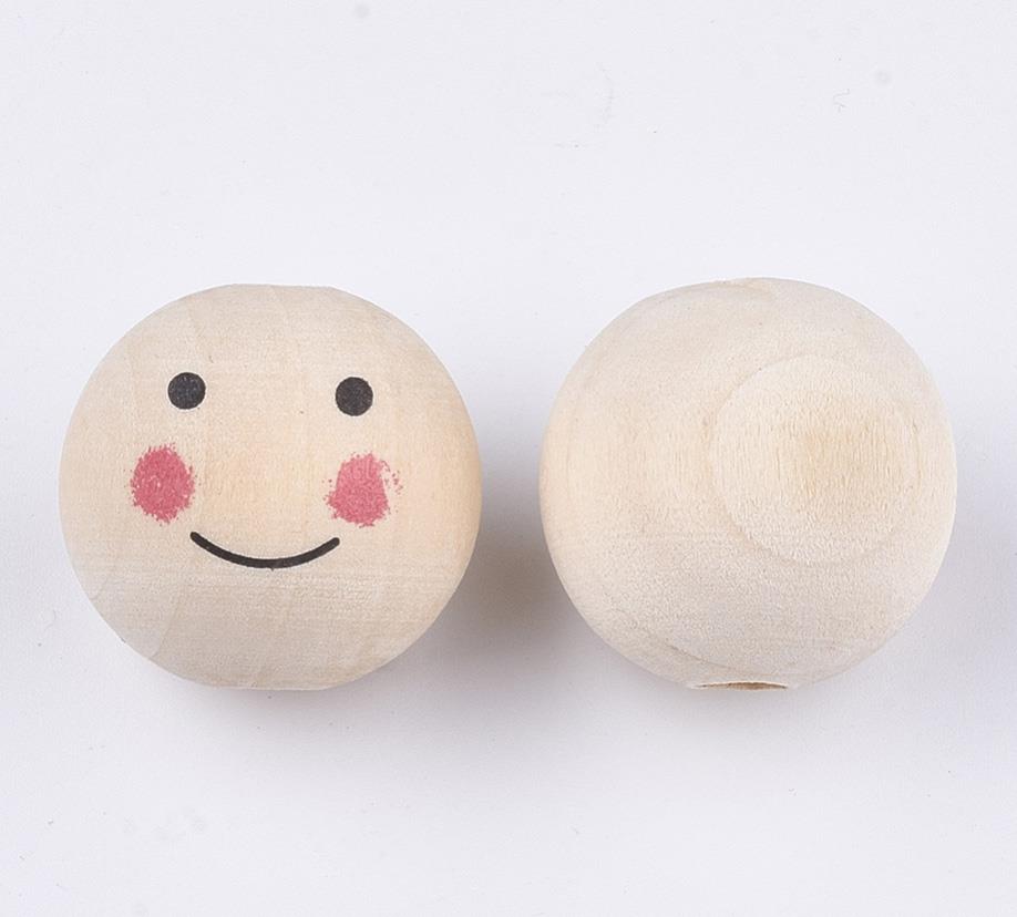 HAPPY FACE ROUND WOODEN BEADS.