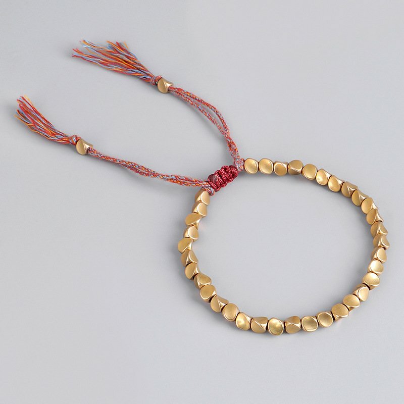 Handmade Tibetan Buddhist Braided Cotton Copper Beads Lucky Rope Bracelet Unisex