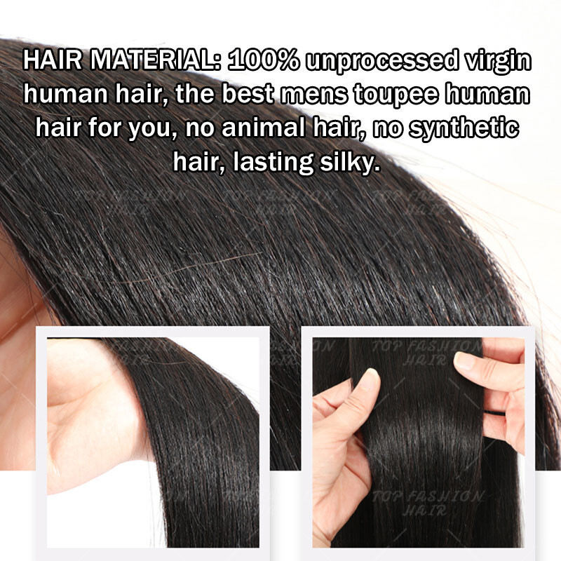 Mens Clip In Remy 100% Human Hair Toupee Hairpiece Wigs Replacement System Wigs