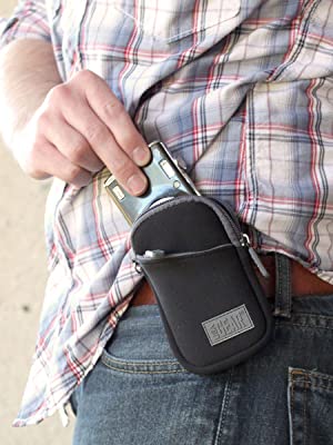 Protection without compare, USA Gear's FlexARMOR camera sleeve offers portability and convenience in one compact pouch. Made from durable and flexible neoprene, the case resists moisture, scratches, impacts, and bumps. The padded design made from premium neoprene fabric resists wear and ensures your camera stays safe from the inside out. The fabric can stretch a bit to accommodate most compact cameras easily at your waist, attached to a bag, and more.
