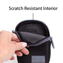Soft Fabric InteriorThe gentle interior eliminates any unsightly scratches or abrasive damage to the body or screen of your digital camera. Feel confident storing your camera in the FlexARMOR Glove then tossing into a backpack, purse, or bag knowing that it will remain scratch free during travel.