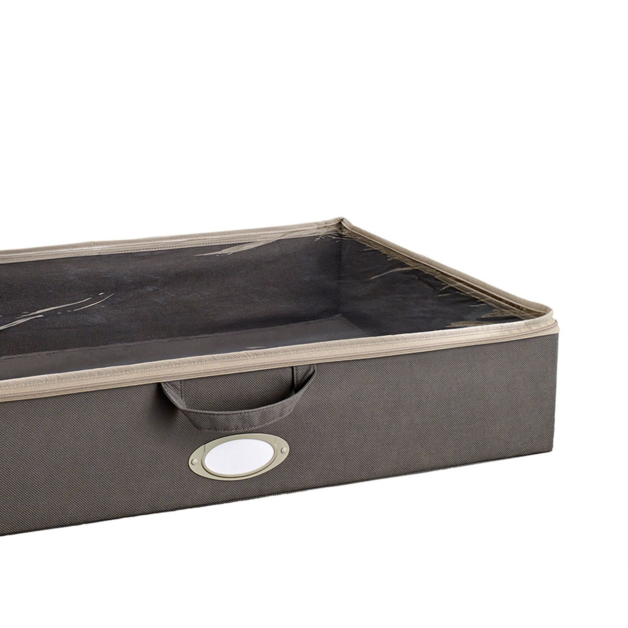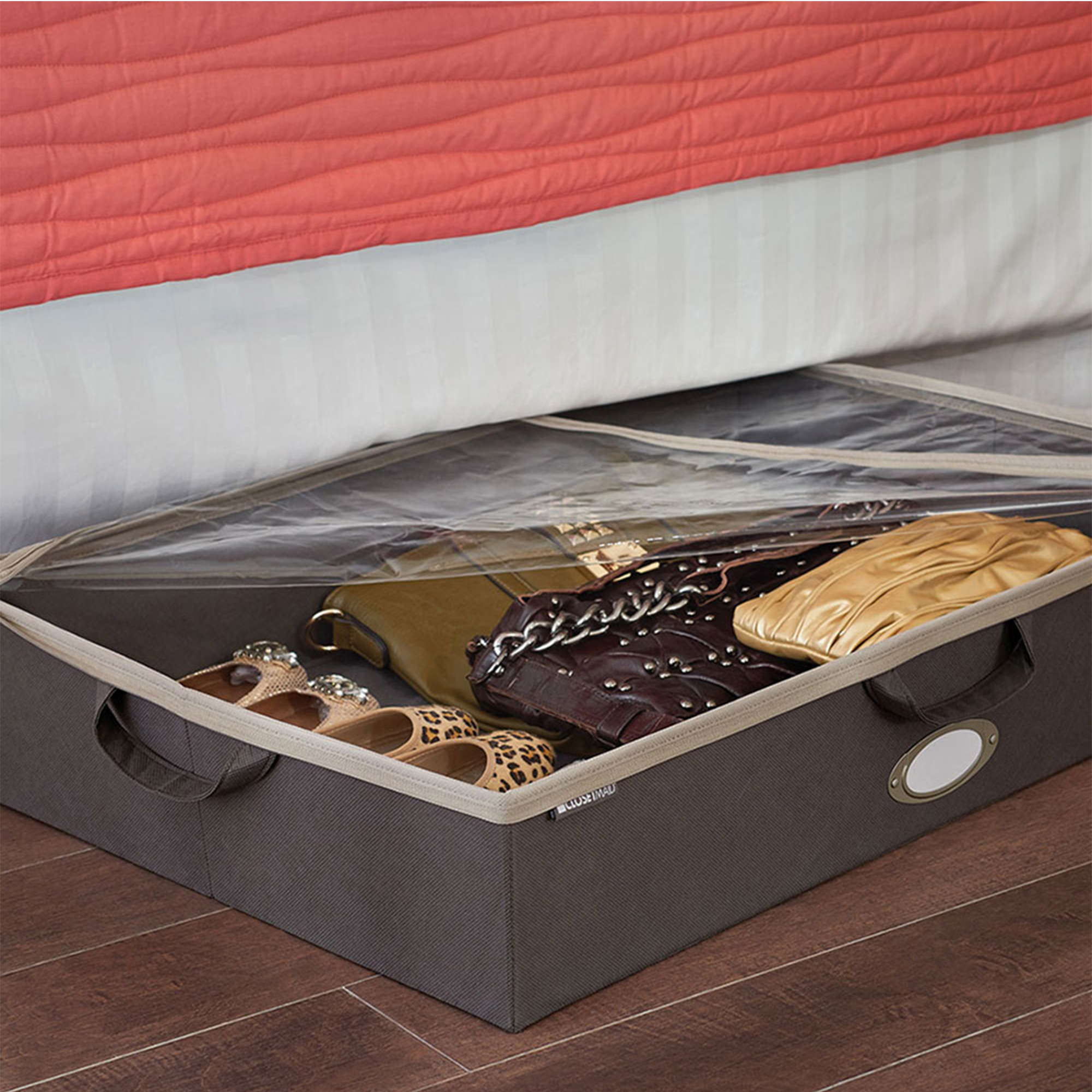 The storage organizer is rendered from a rigid, nonwoven polypropylene fabric with a handsome charcoal tone. The bin is ideal for smaller items like shoes, folded garments, purses, and much more. The reinforced side handle makes the tote easy to carry from room to room and providing you with the utmost portability. Plus, the included zipper cover prevents unwanted dust from entering.