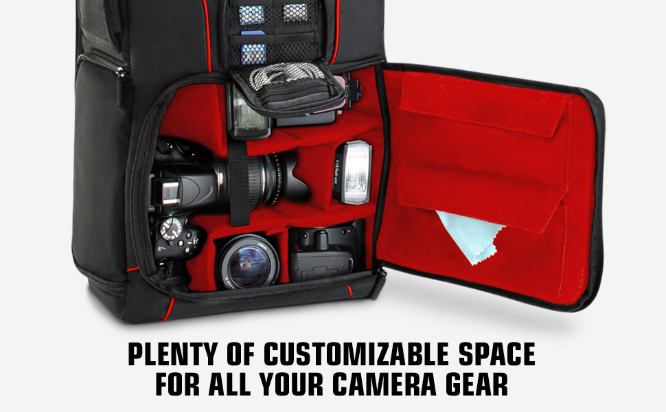 USA GEAR S17 Large Camera Backpack is a professional DSLR camera bag, mirrorless camera backpack, and drone backpack built for travel photography and outdoor use. This weather-resistant camera bag features durable fabric, a built-in rain cover, customizable padded dividers for cameras, lenses, and drones, plus accessory pockets and a tripod holder to keep gear organized. A quick-access side compartment lets you grab your camera fast, while padded straps and a breathable back panel add comfort. A dedicated 15.6-inch laptop compartment secures your laptop or tablet, making this all-in-one photography backpack ideal for photographers, videographers, and drone pilots for travel and work.