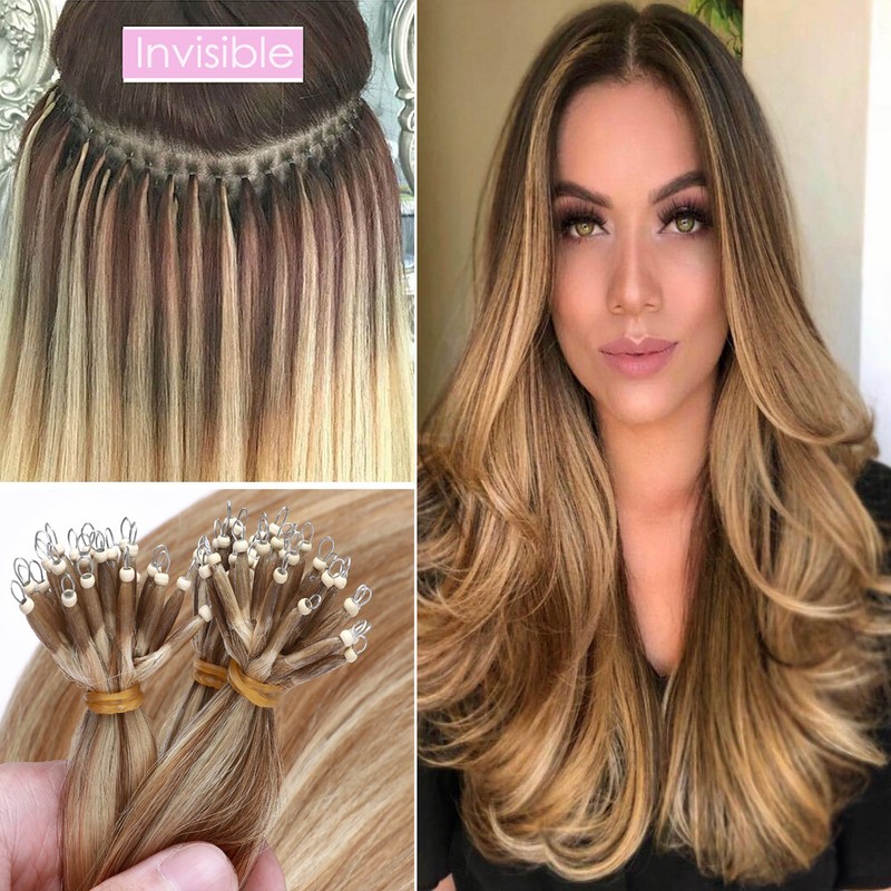 CLEARANCE Russian Nano Ring Human Hair Extensions Real Remy Thick Full Head LOOP
