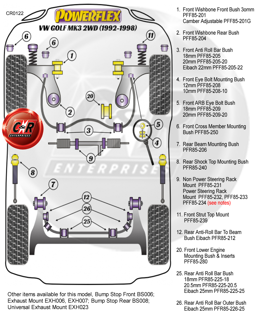También vendemos arbustos PowerFlex para todas las marcas y modelos de automóvil.