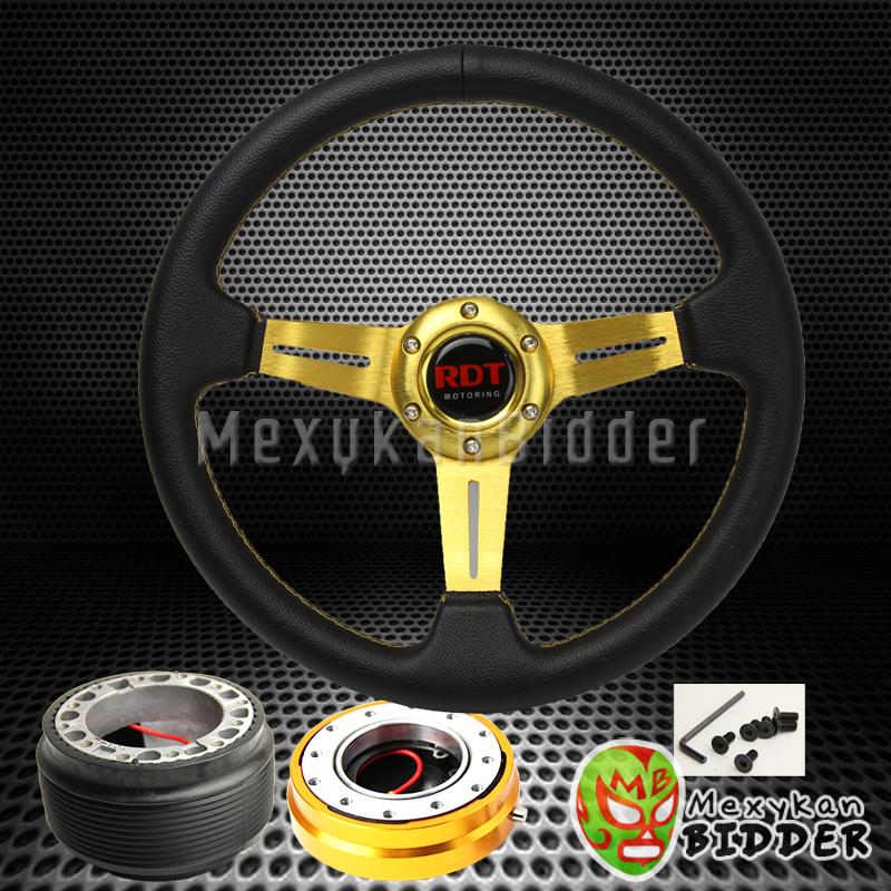 GOLD 2.5" DEEP DISH STEERING WHEEL & QUICK RELEASE FOR HONDA CIVIC 1992-1995 EG