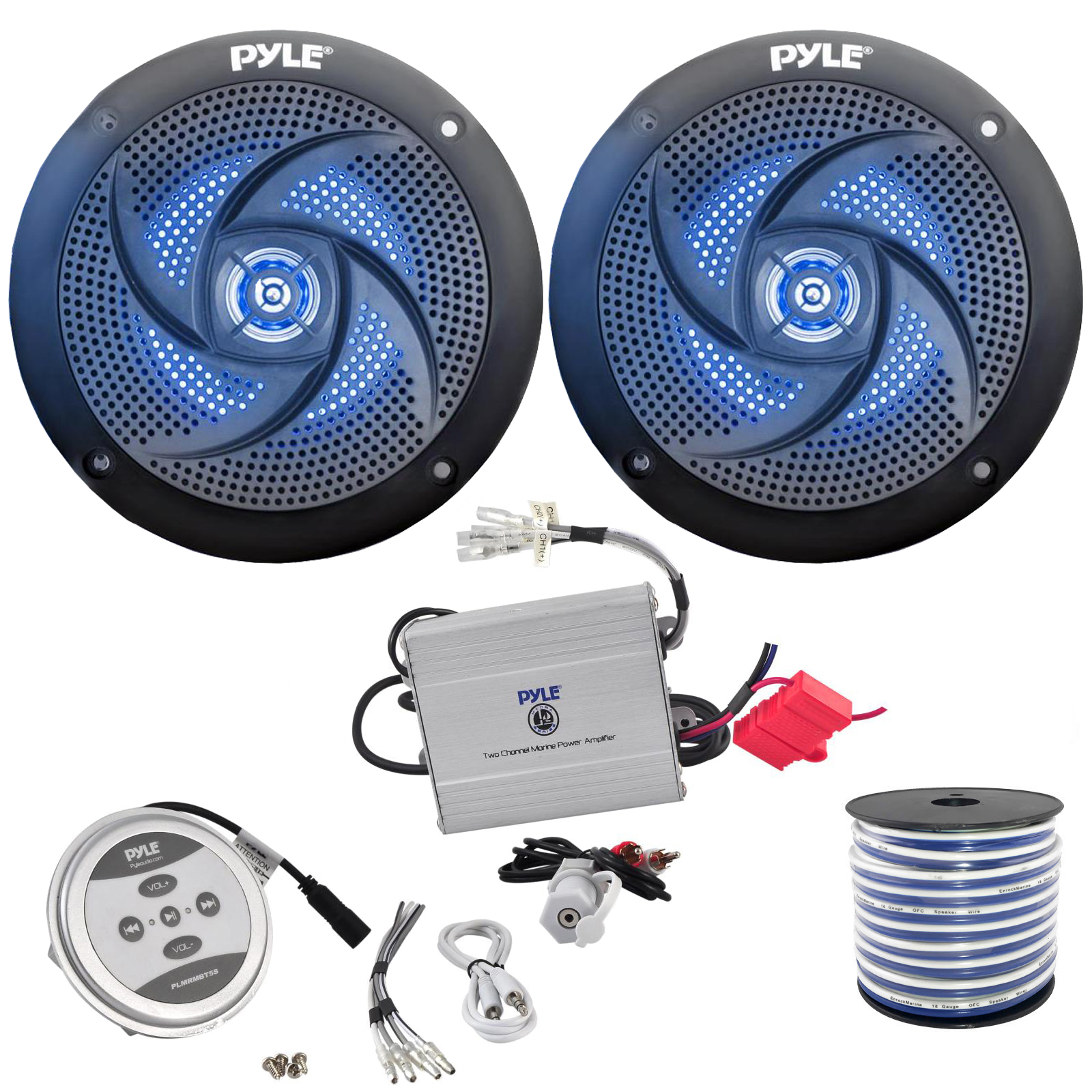 2 x Pyle 6.5" LED 2-Way Marine 240W Black Component Speakers, Pyle Marine Grade 600 Watt Bluetooth 2-Channel Boat Yacht Amplifier System, Enrock Marine-Grade 18-Gauge Speaker Wire