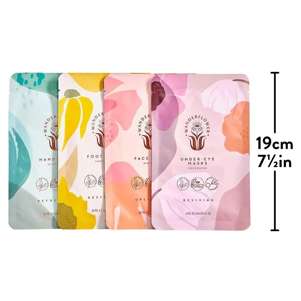 That's why Wanderflower has curated a collection of gentle masks for the eyes, the hands and the feet, in addition to a soothing mask for the face.