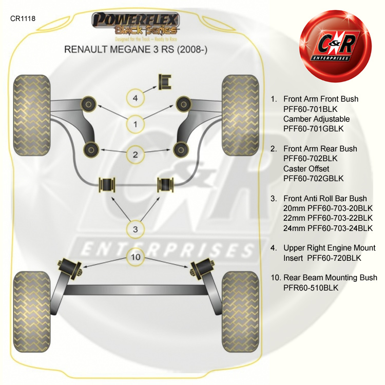 Powerflex Serie negra Los productos están enfocados en Track / Motorsport. Para la carretera, use el Púrpura, Amarillo y Rojo Los arbustos PowerFlex son más adecuados para los automóviles modificados estándar y modificados por carretera rápida.