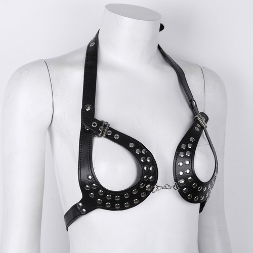 Women Leopard Print Faux Leather Unlined Wireless Bra Underwear Adjustable Spaghetti Strap Bikini Top.