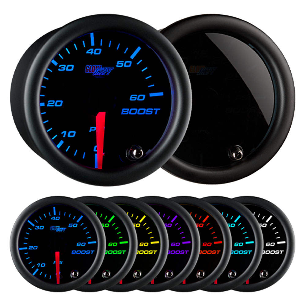 GlowShift also stocks a wide variety of pillar pods for a vast array of specific vehicles while offering single pillar pods, dual gauge pods as well as triple gauge pods. All mounting hardware required for a pillar pod setup is included. Our car specific gauge pods will comfortably fit 2 1 16 gauges while our selection of universal pillar pods include both 52mm and 60mm pillar pod gauges sizes. Some of our most recently released models include our new nitrous pressure gauge, digital boost gauge as well as new styles of pyrometers and egt gauges. Every gauge (including our turbo boost gauge) is crafted with the highest quality in mind and includes all vital senders and parts for a smooth installation.