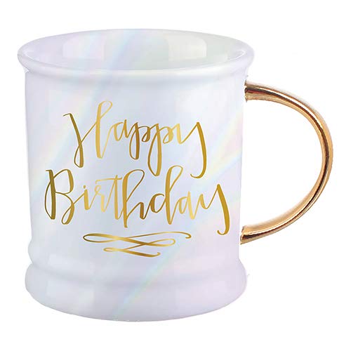 in style with this cute and fun ceramic mug. White pearl mug with Happy