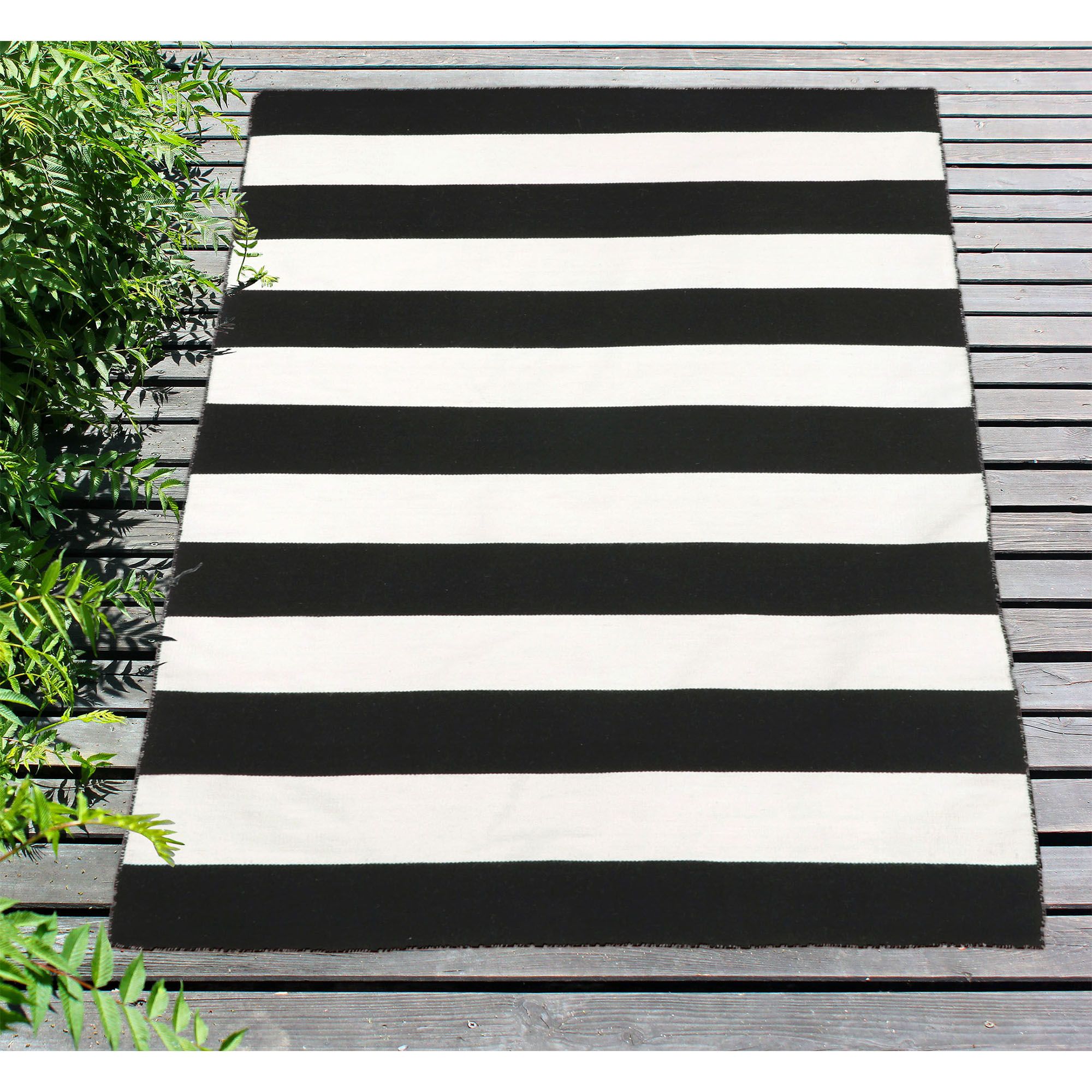 Though suited for indoor and outdoor use, the life of this 99-inch wide mat is prolonged with reduced exposure to moisture. To clean, vacuum regularly, and sponge as needed. For deeper cleans, gently rinse with mild detergent and water, then hose down and hang to dry. Liven up any space in your house with the Rugby Stripe Transocean Area Rug from Liora Manne.