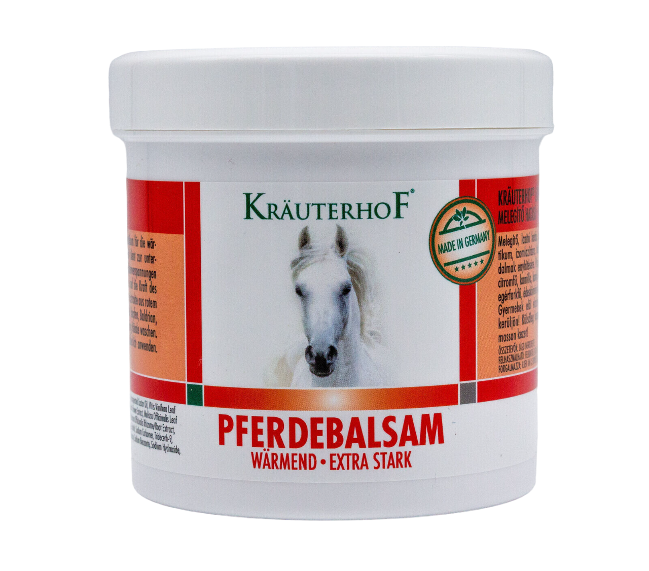 Experience deep warmth and lasting relief with Krauterhof Pferdebalsam, a powerful herbal balm formulated to soothe tired muscles and support circulation. This extra strong warming balm combines the benefits of natural herbal extracts like horse chestnut, vine leaves, chamomile, balm, yarrow, hops, mint, and valerian with warming agents that provide fast-acting and long-lasting comfort. Ideal for athletes, active individuals, or anyone seeking targeted warmth and relief in areas like legs, shoulders, wrists, and feet.