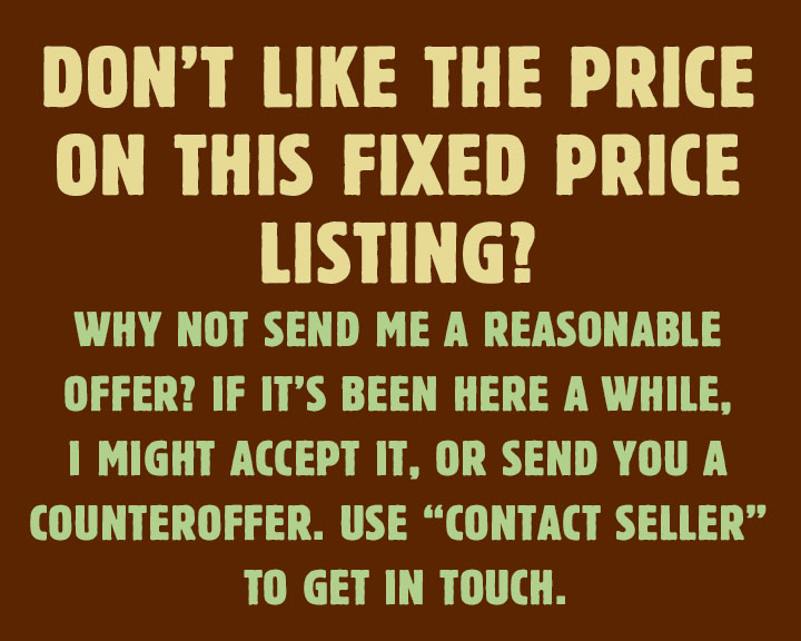 5) LISTING DISCREPANCIES If the Title, Description, and/or Photo on a listing do not match, for gosh sakes don't buy it. Let me know instead so I can fix the listing. If you do buy, the item described in the Title of the listing takes precedence over anything else. If you don't agree with that, I will cancel the purchase at your request.