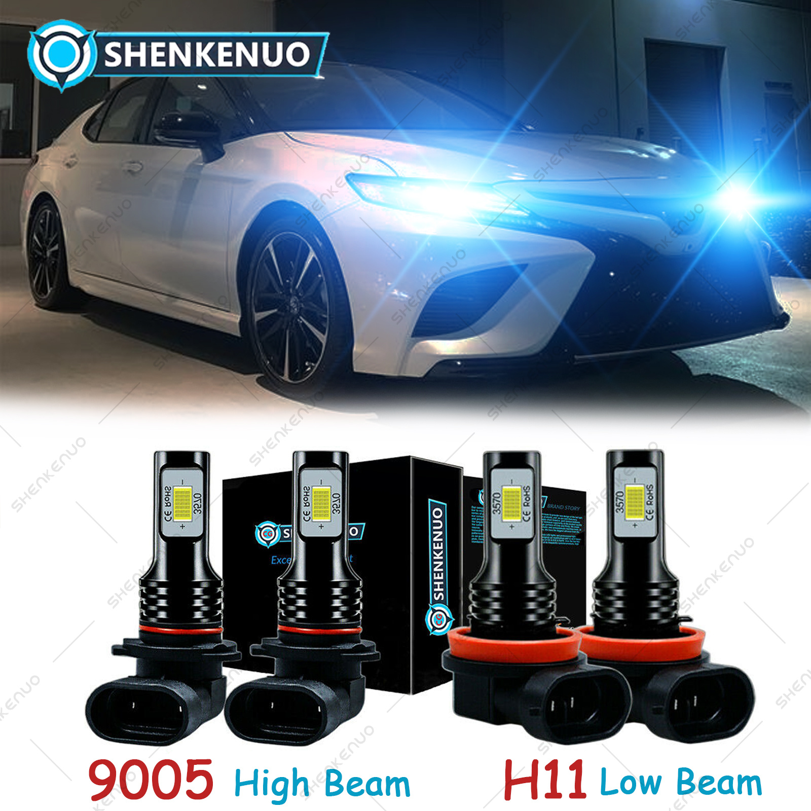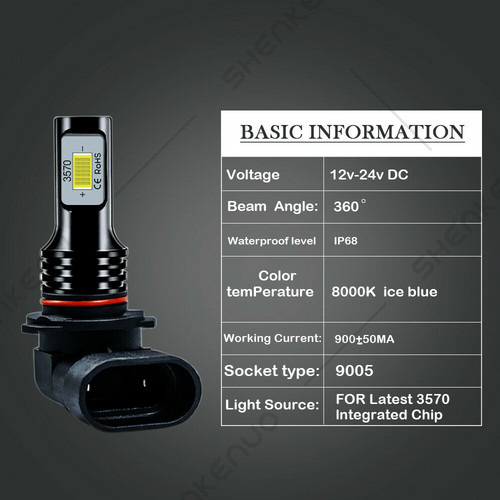 1. Please double check local traffic rules before order, ice blue bulbs are illegal to use in some of the states. 2.This kit is for vehicles with Factory Halogen Systems, it will not work with vehicles with Factory HID.Pls confirm the item if it can matches your car before you purchase. Technical Specification: Plug Type: 9005 (High Beam) + H11 (Low Beam) LED Quantity(each bulb): 2pcs* 3570 CSP chips Luminous Flux: 11000LM/set (5500LM/bulb) Operating Voltage: DC 12V(fit 12V vehicles) Color Temperature: Ice Blue 8000K IP68 rated water and dust seal, over 50000hrs lifetime Beam Angle: 360 degree Material: Aviation 6063 aluminum profile Operating Temperature: -40-80 degree Celsius Usage: headlight,fog light Advantage: *Latest 3570 CSP chip(USA) light source, 2 luminous faces no blind zone *Engineering beam pattern design throw more light on road evenly at appropriate angle without foggy light *Ice Blue light reflect road paint/signs better to show clearer road situation during night driving *270 degree low beam angle with cut-off line, will not dazzle oncoming traffic *Built-in constant current CPU, instant full brightness without start-up relay Install Caution: 1. As a safety precaution, make sure that the car has had time to cool down properly before starting the installation process. 2. Put the vehicle into park or make sure it is securely in gear. 3. Make sure to have the ignition turned off and the keys removed. 4. Be careful to avoid burns, especially when turning on or off the vehicles lighting. 5. Be careful to avoid crushing or cutting the bulbs. Also make sure to not touch the bulbs with your fingers, as this will cause blotting. 6. Fully examine the connection of the contact points, ports and the wires as faulty connections can cause lighting problems. 7. Make certain that the end of the bulb does not come in contact with the interior light shield of the headlight when adjusting the bulb. 8.Please install car headlight dust cover to ensure the normal operation of the lamp Package Included: 4Pcs LED Bulbs 9005 (High Beam) + H11 (Low Beam) |