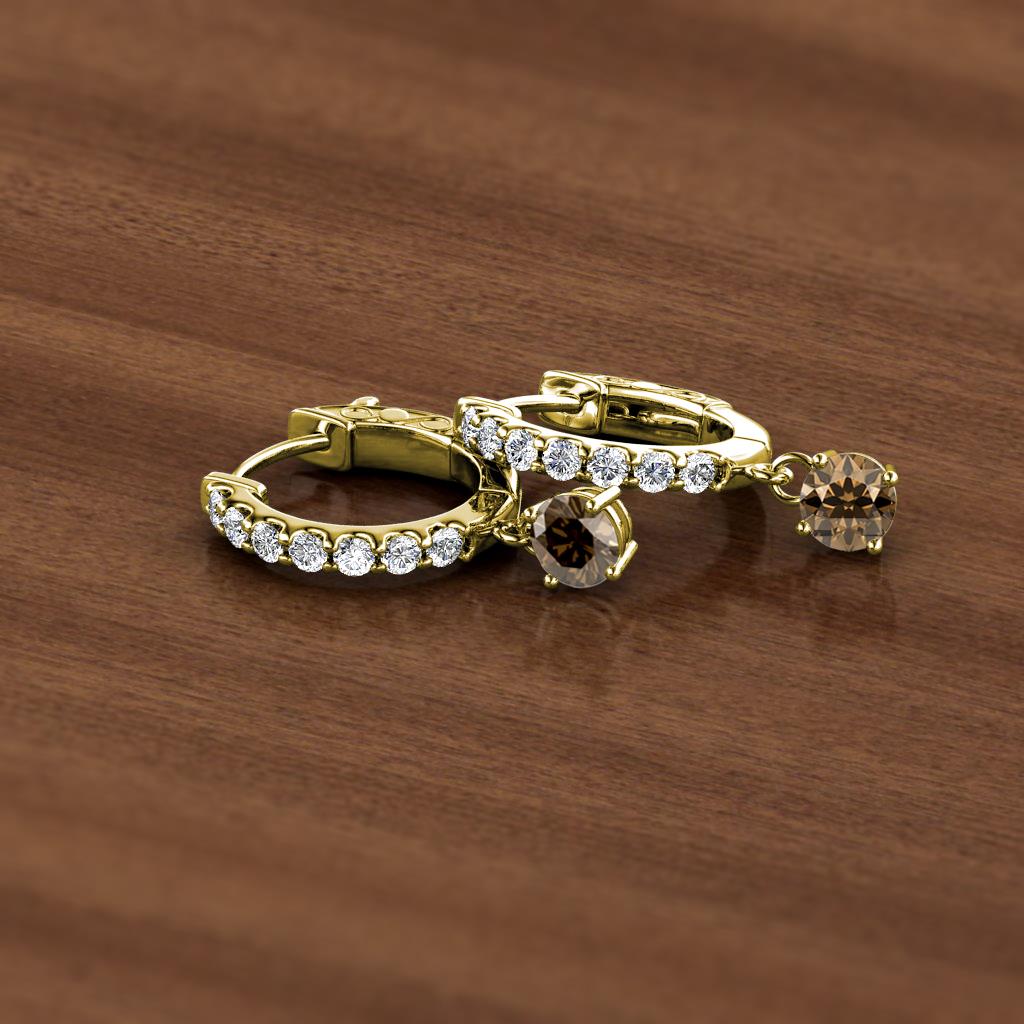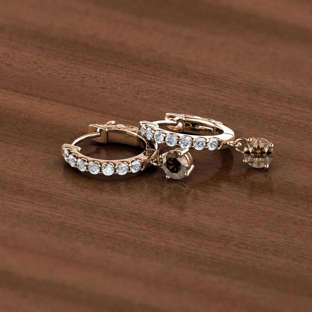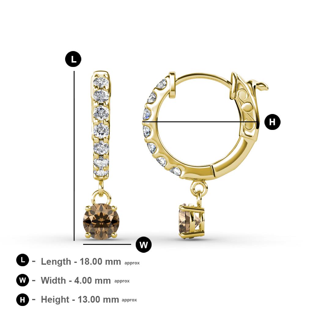 Round Smoky Quartz and Diamond 3/4 ctw Womens Dangle Huggie Hoop Earrings 14K Gold