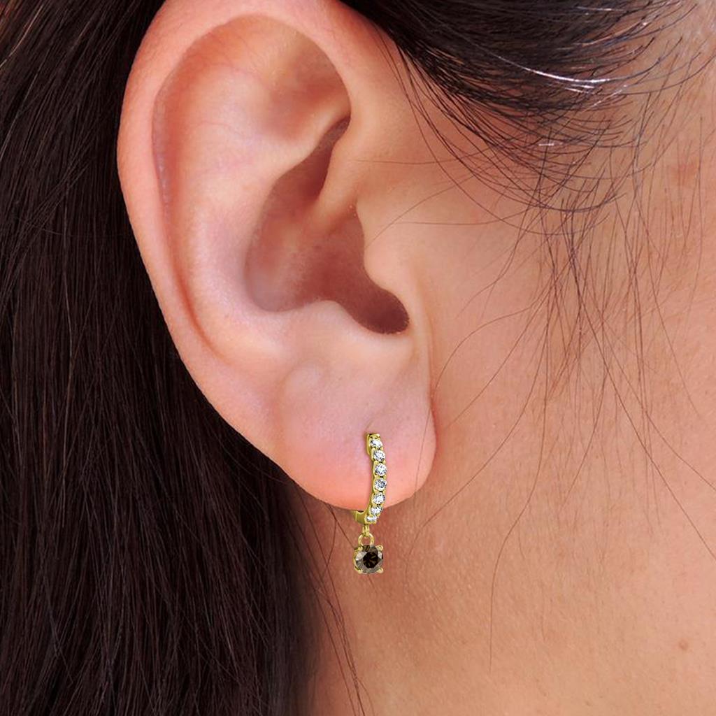 DetailsAn enchanting twist on classic hoops, these earrings feature Diamond huggie hoops with dangling Smoky Quartz perfect to elevate the look of any outfit.