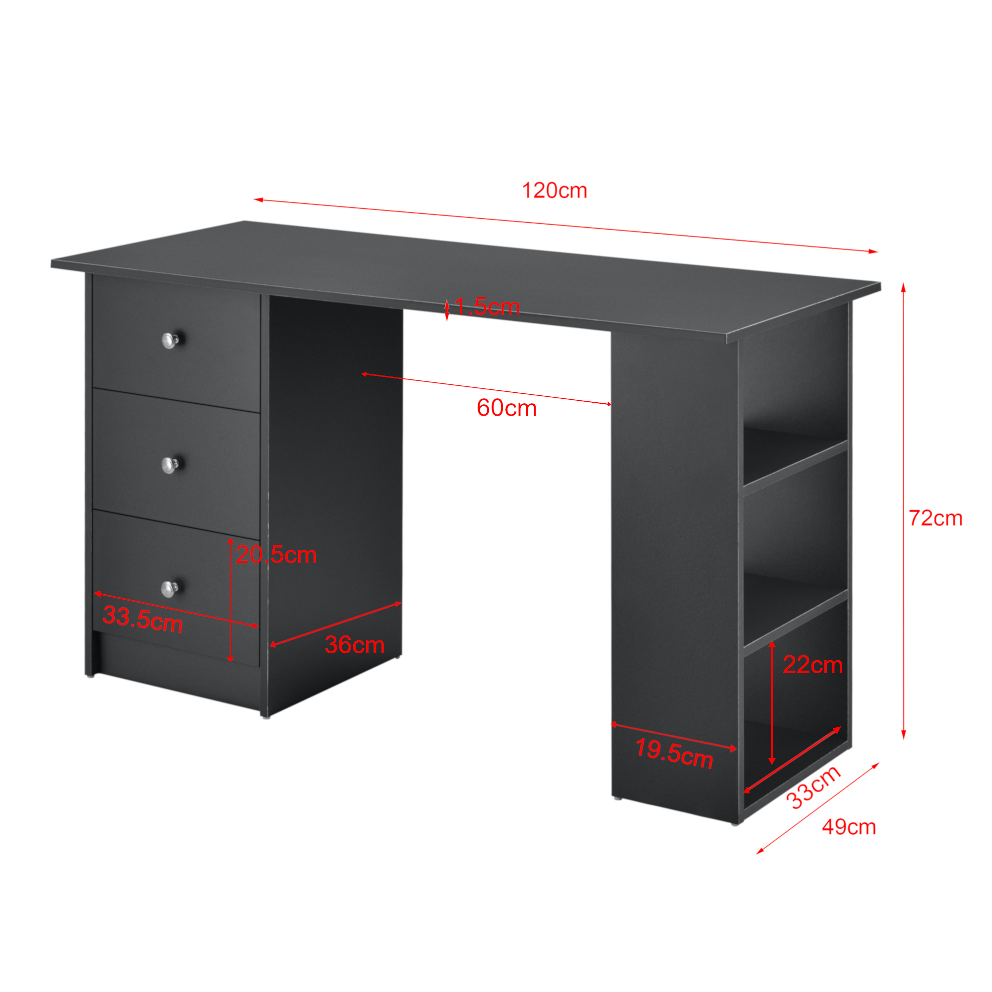 Schreibtisch »Lemberg« mit Regal und 3 Schubladen - 120x49x72cm - Dunkelgrau