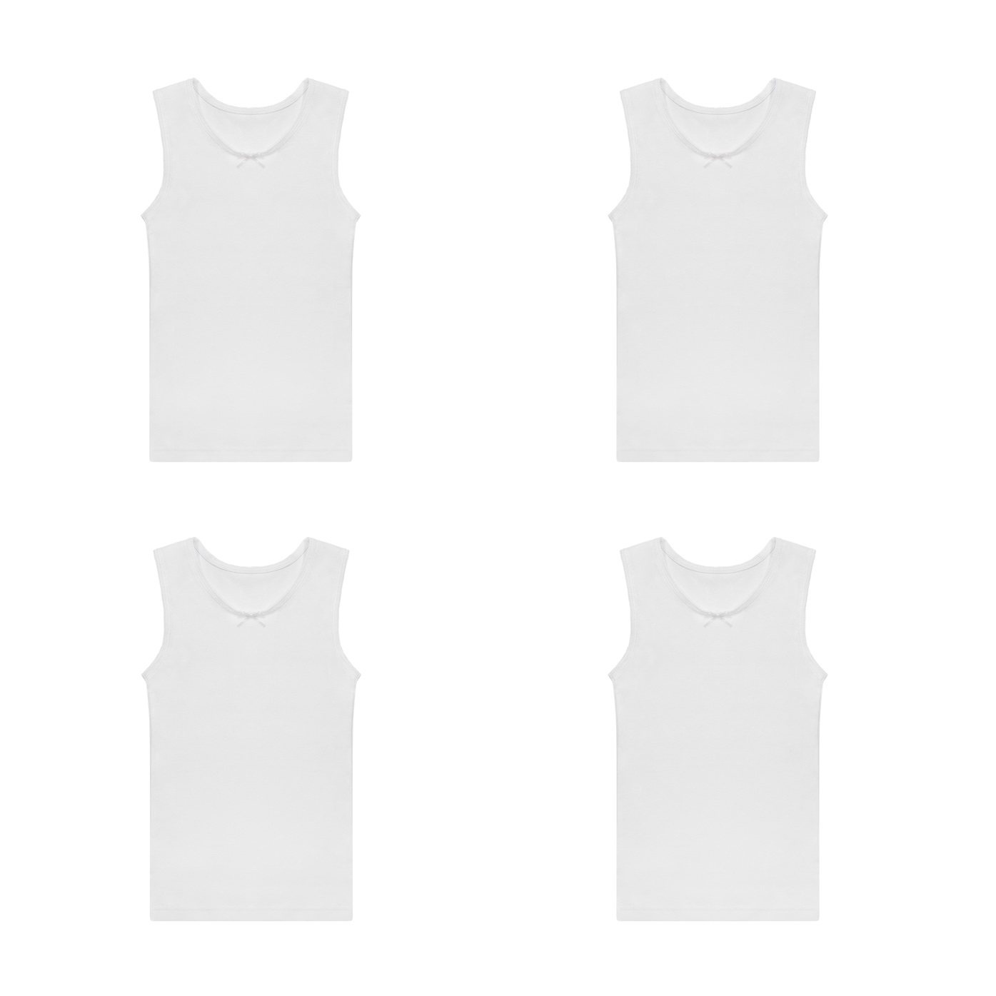 4 Camisoles Per Pack - in Solid white with added colored bow and strap