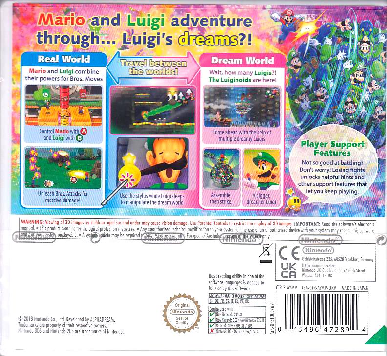 In den Kampfsequenzen in der Traumwelt tritt die Macht des verträumten Luigi erneut in den Vordergrund, wenn eine Horde von Luigis Mario mit Energie versorgt, um furchterregende Luigi-Attacken zu kreieren. Diese unterscheiden sich stark von den Attacken der Markenzeichen von Bros. in der realen Welt und nutzen die Möglichkeiten des Nintendo 3DS oder Nintendo 3DS XL-Systems auf originelle Weise. Ein Beispiel: Bei einer Luigi-Attacke reitet Mario auf einem Ball aus Luigis, wobei der Spieler die Bewegungssteuerung der Konsole verwendet, um den Kurs des Balls zu steuern und die vor ihm liegenden Gegner zu vernichten. Ob Angriff, Gegenangriff oder Ausweichen im Kampf, die 3D-Fähigkeiten der Konsole sind auch für die Spieler entscheidend, um perfekt getimte Aktionen zu beurteilen.