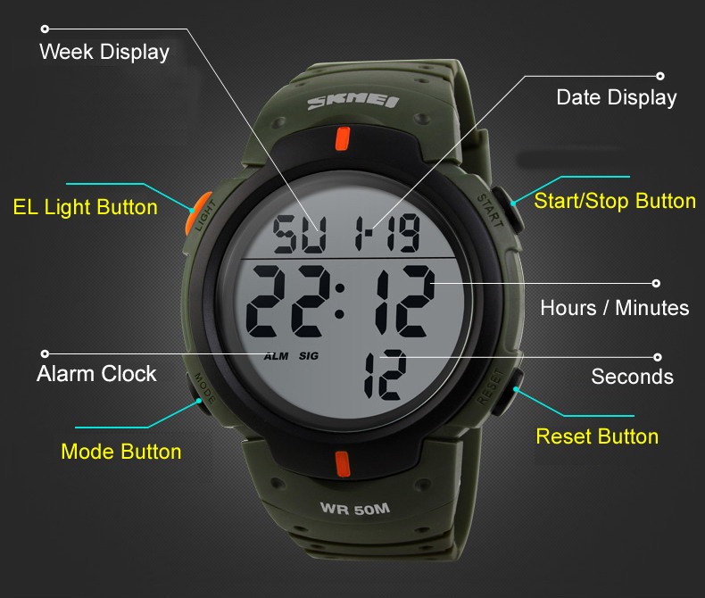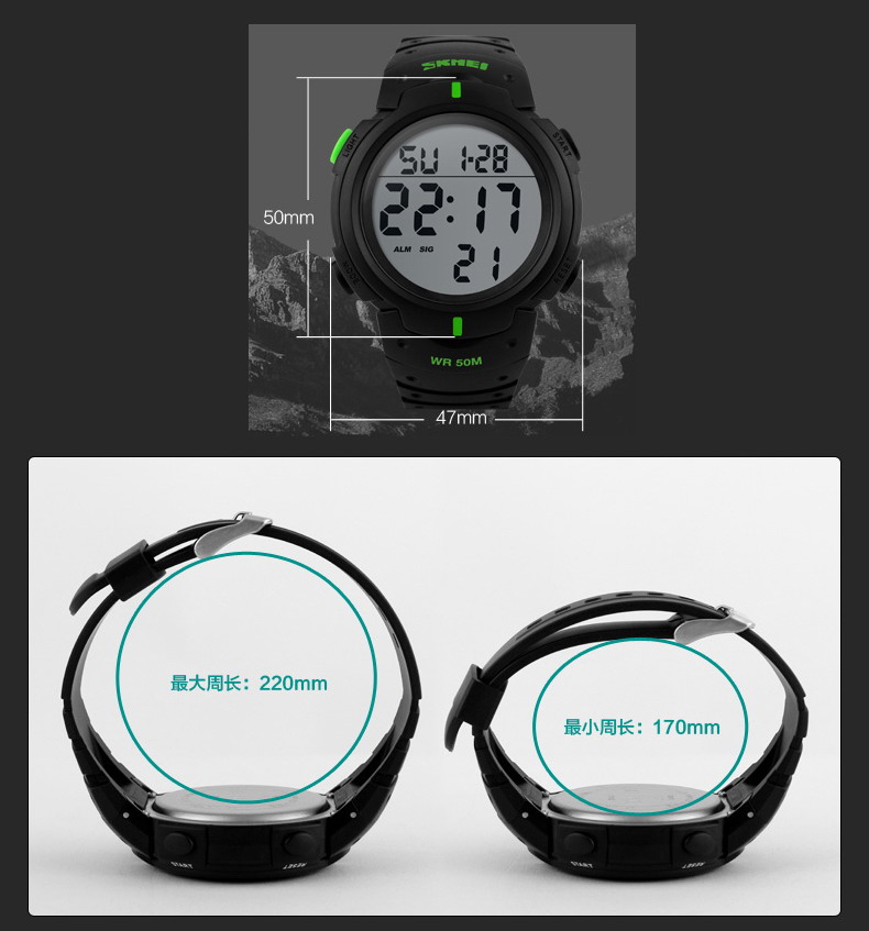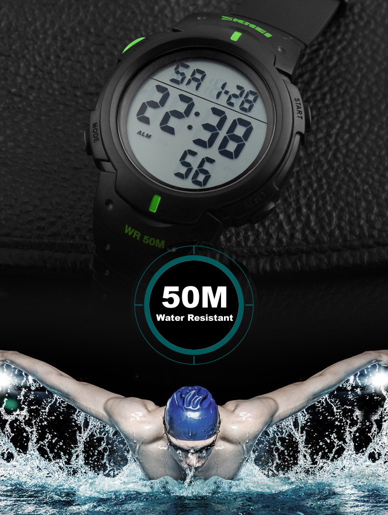 Water Resistant: 50m - 5ATM, Also for shower, swimming ,Diving.(Please Don't Press Any Key Underwater)