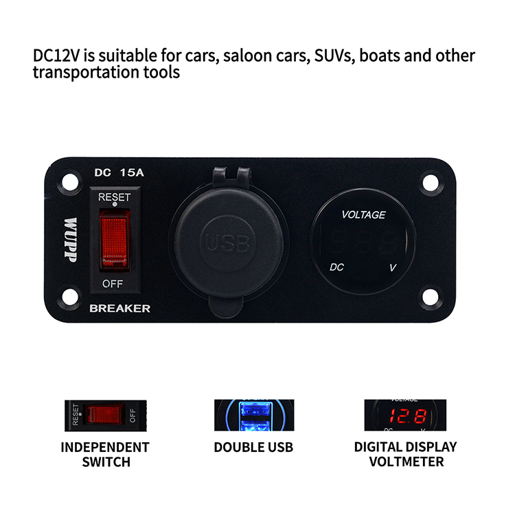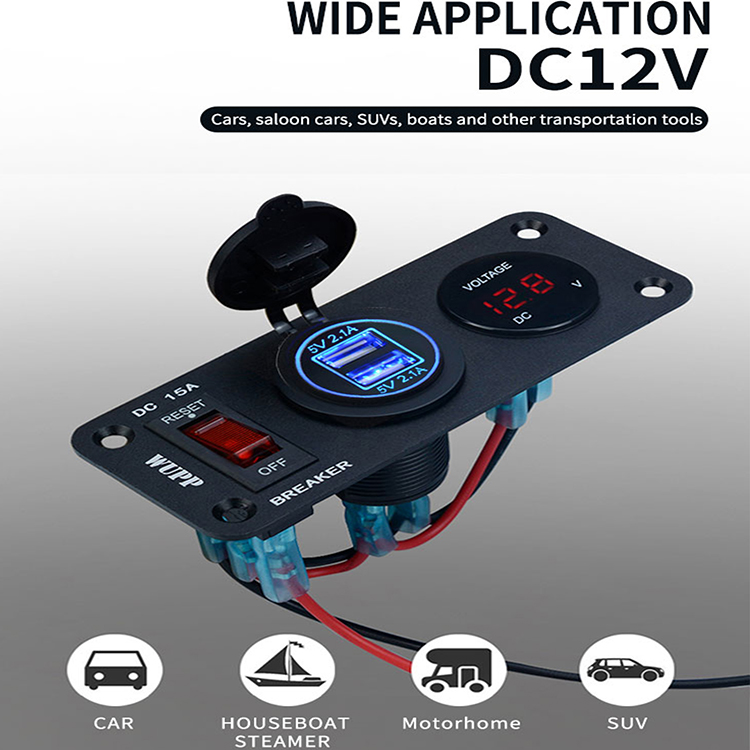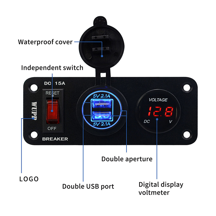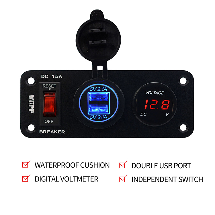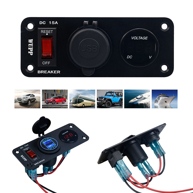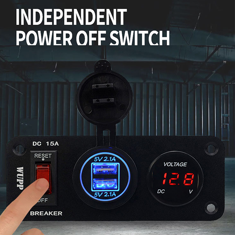 l Style: center console power switch + 4.2A double aperture blue + lens type voltmeter red