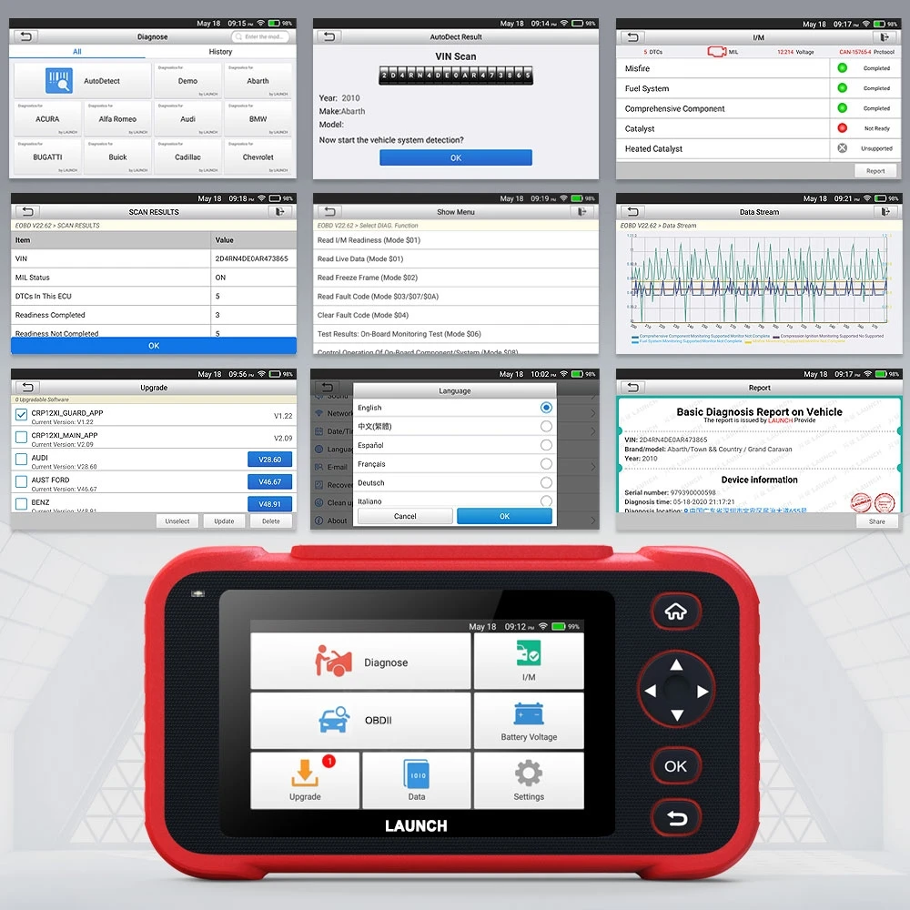 LAUNCH CRP123I obd2 scanner will automatically generate and store a basic diagnosis report on the vehicle as a reference for vehicle inspection and maintenance. The vehicle operating data provided in this report are the static data, you can share and print it by email for technical assistance.
