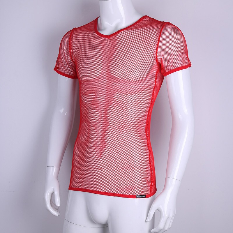 Men Sheer Fishnet T-Shirt Muscle Tops Training Shirt Fitness Sportswear Clubwear