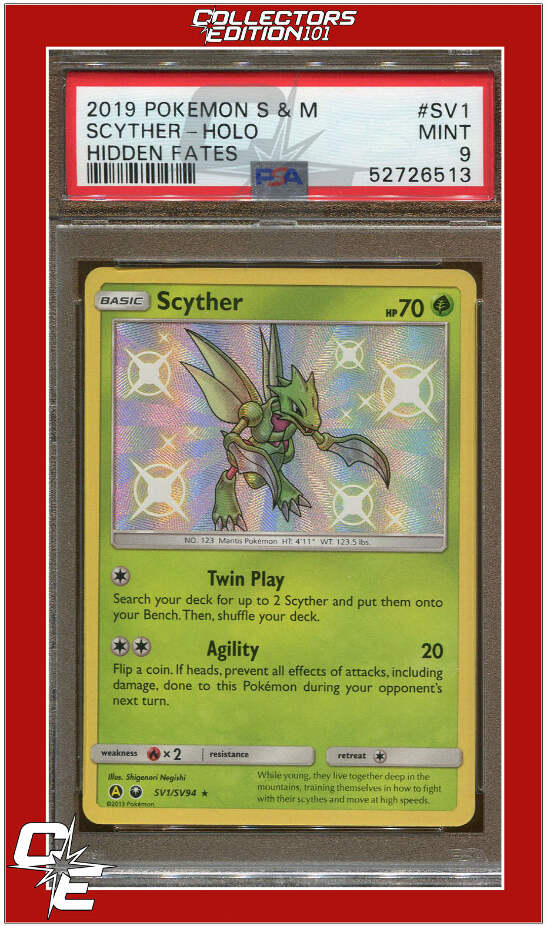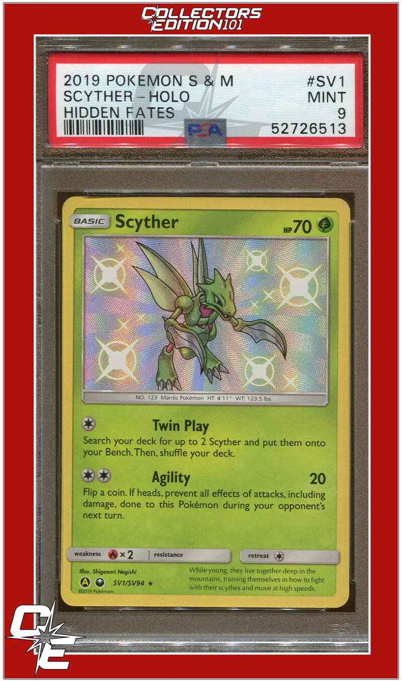 2019 Pokemon Sun & Moon Hidden Fates SV1 Scyther-Holo MINT 9 - POPULATION 321 as of 12-3-2021