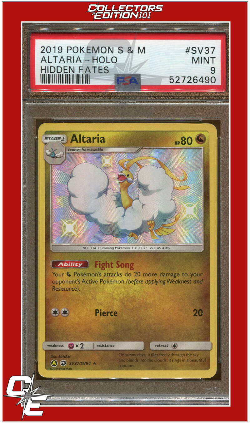 2019 Pokemon Sun & Moon Hidden Fates SV37 Altaria-Holo MINT 9 - POPULATION 198 as of 12-3-2021