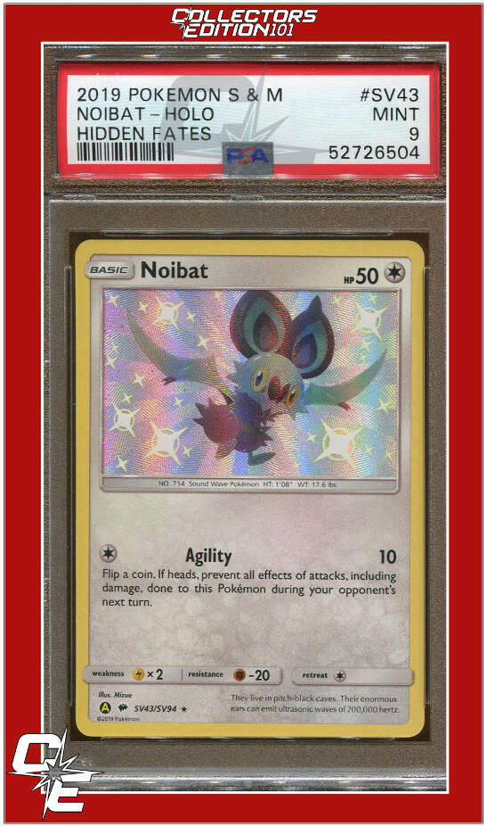 2019 Pokemon Sun & Moon Hidden Fates SV43 Noibat-Holo MINT 9 - POPULATION 138 as of 12-3-2021