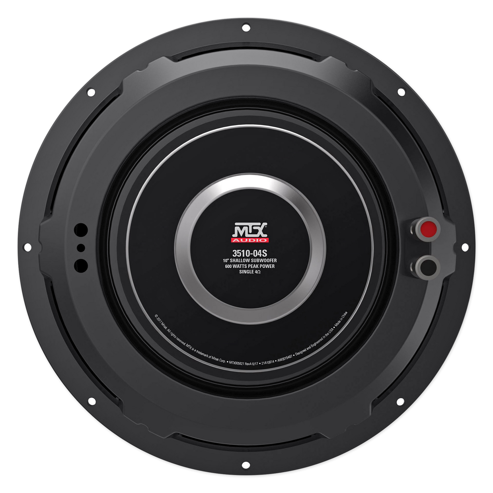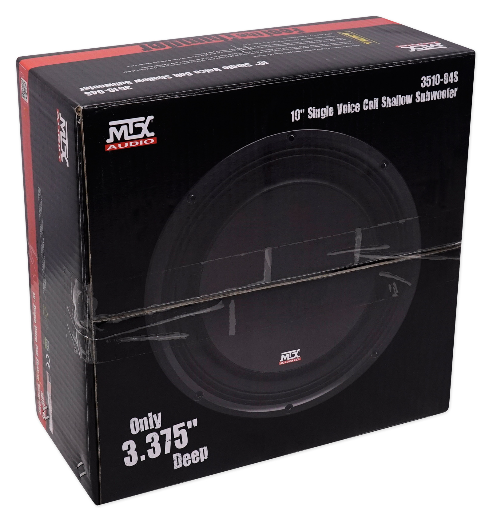 The 3512-04S is a 10" single voice coil, 4O, 300-watt shallow mount Car