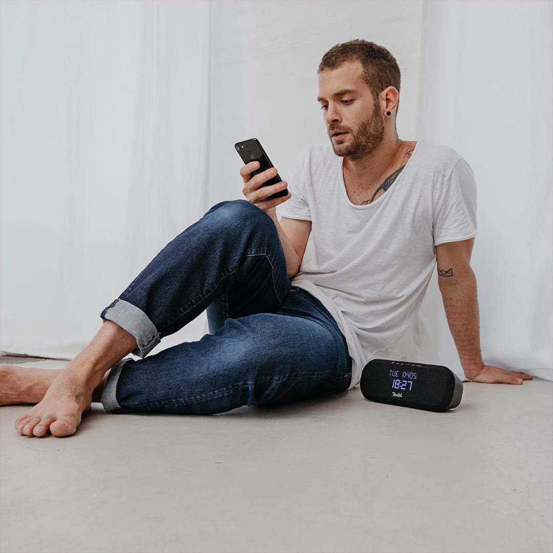Verwende Bluetooth um vom Smartphone auf das RADIO ONE zu streamen, etwa Apple Music oder Amazon Music. Das RADIO ONE startet aus dem Standby, wenn es ein Signal empfängt.