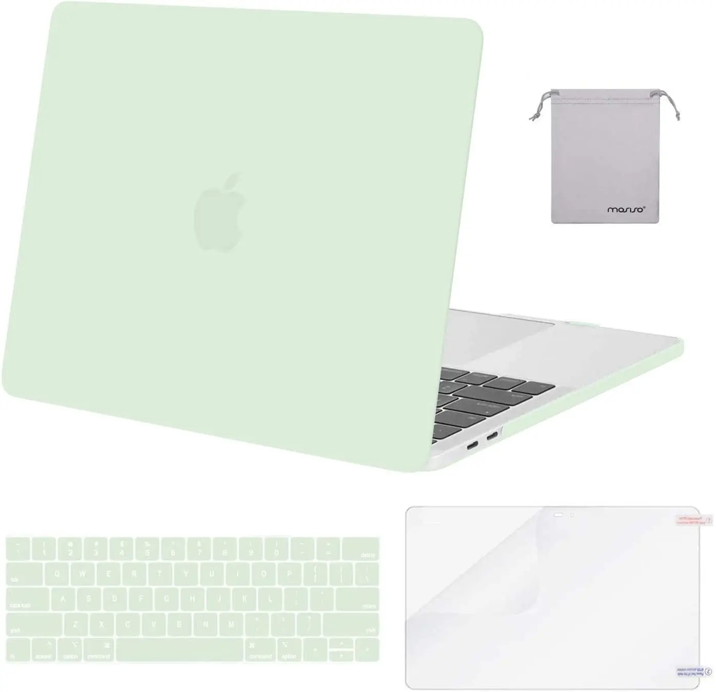 Including 1 matching color keyboard cover & 1 screen protector & 1 small storage bag to protect your keyboard & screen against spills. The small storage bag is easy for you to storage mouse and earphone. 1 year warranty on case, keyboard cover.