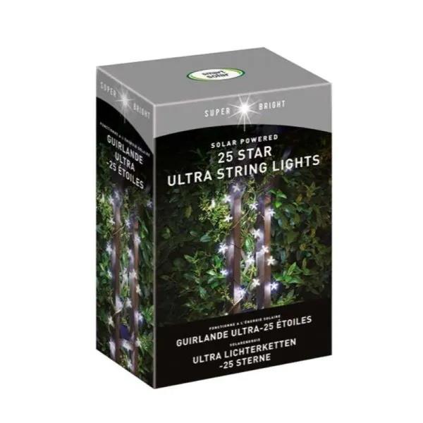This string of 25 white stars are ideal for decorating shrubs, trellis, parasols and doorways and are powered by a separate solar panel allowing lights to be placed in shady areas.