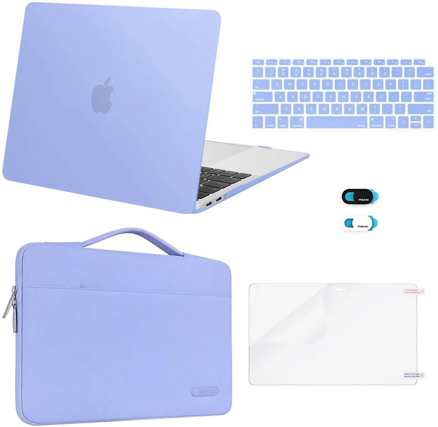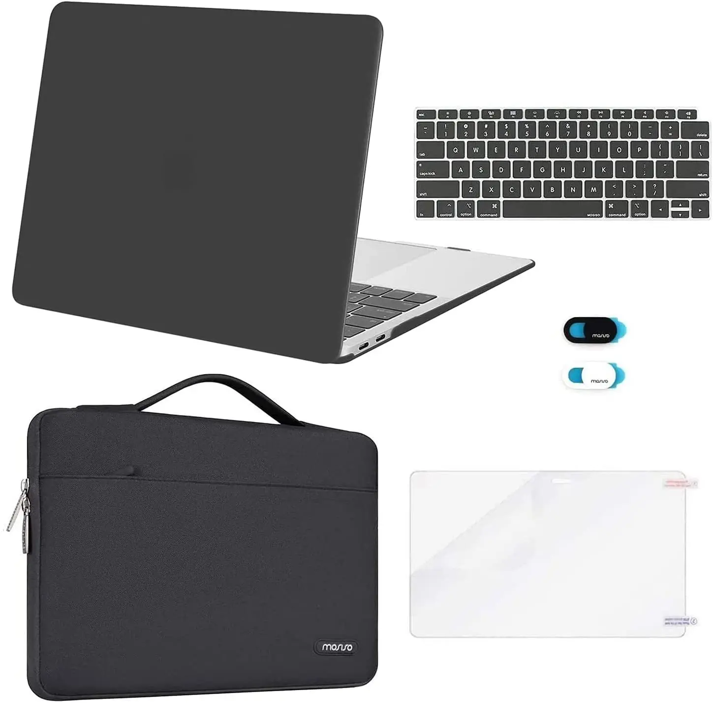 Including 2 matching color keyboard covers (one compatible with MacBook Air 13 inch 2022 2021 2020 release model A2337 M1 A2179 and another compatible with MacBook Air 13 inch 2019 2018 release model A1932) & 1 screen protector to protect your laptop keyboard & screen against spills. 1 year warranty on bag, case, privacy webcam cover slide and keyboard cover.