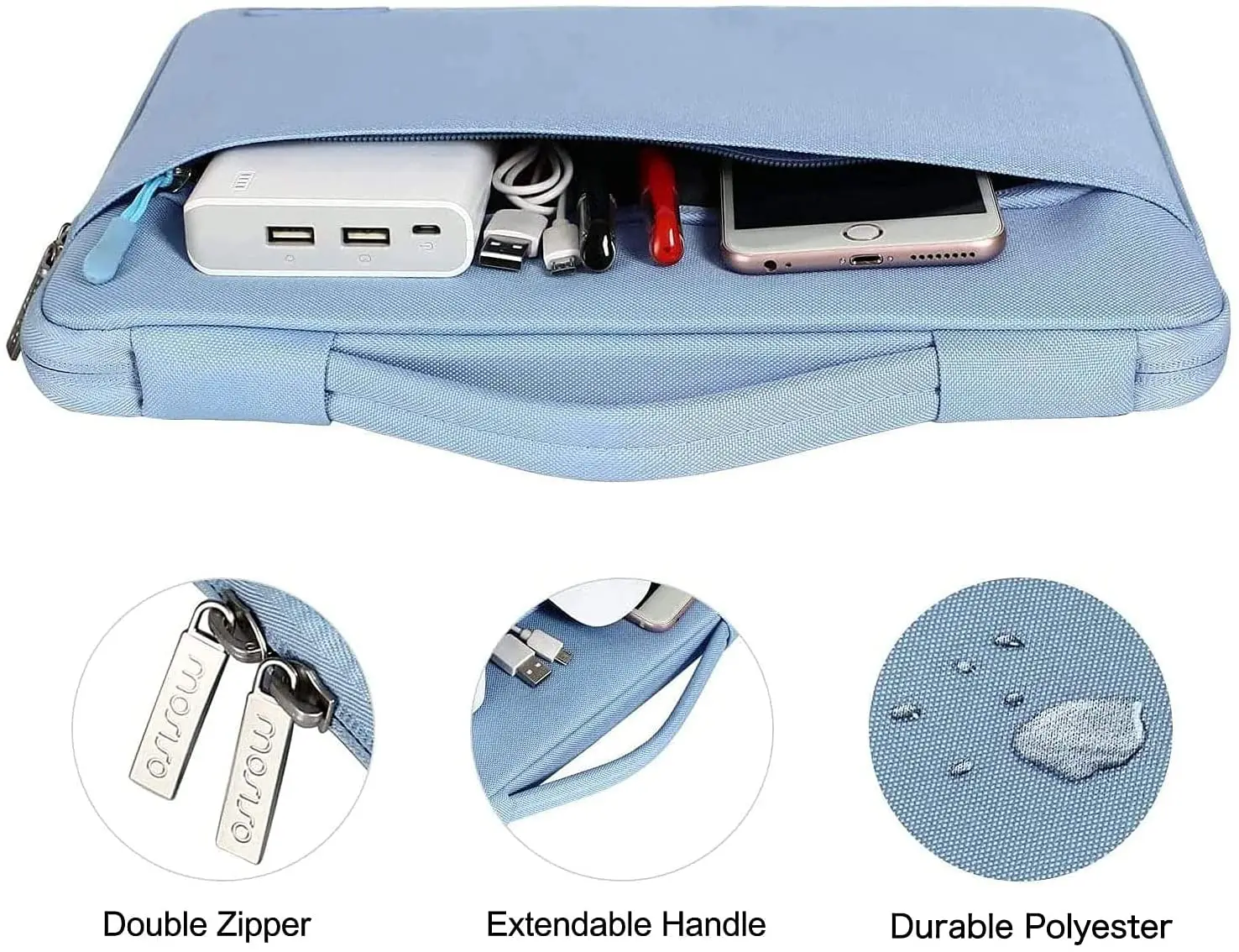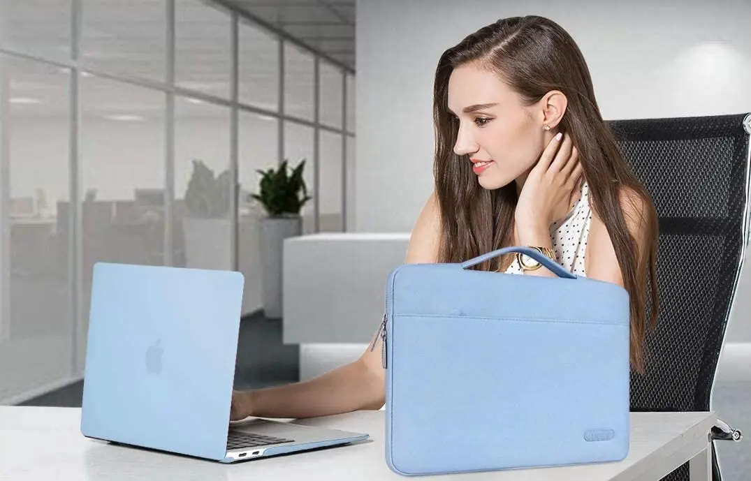 The 360 degree protective shockproof laptop sleeve with handle carrying bag is made of polyester material, protect your laptop against accidental spills. Slim and lightweight, does not bulk your device up and can easily slide into your briefcase, backpack or other bag. Ideal for business, school or travel.