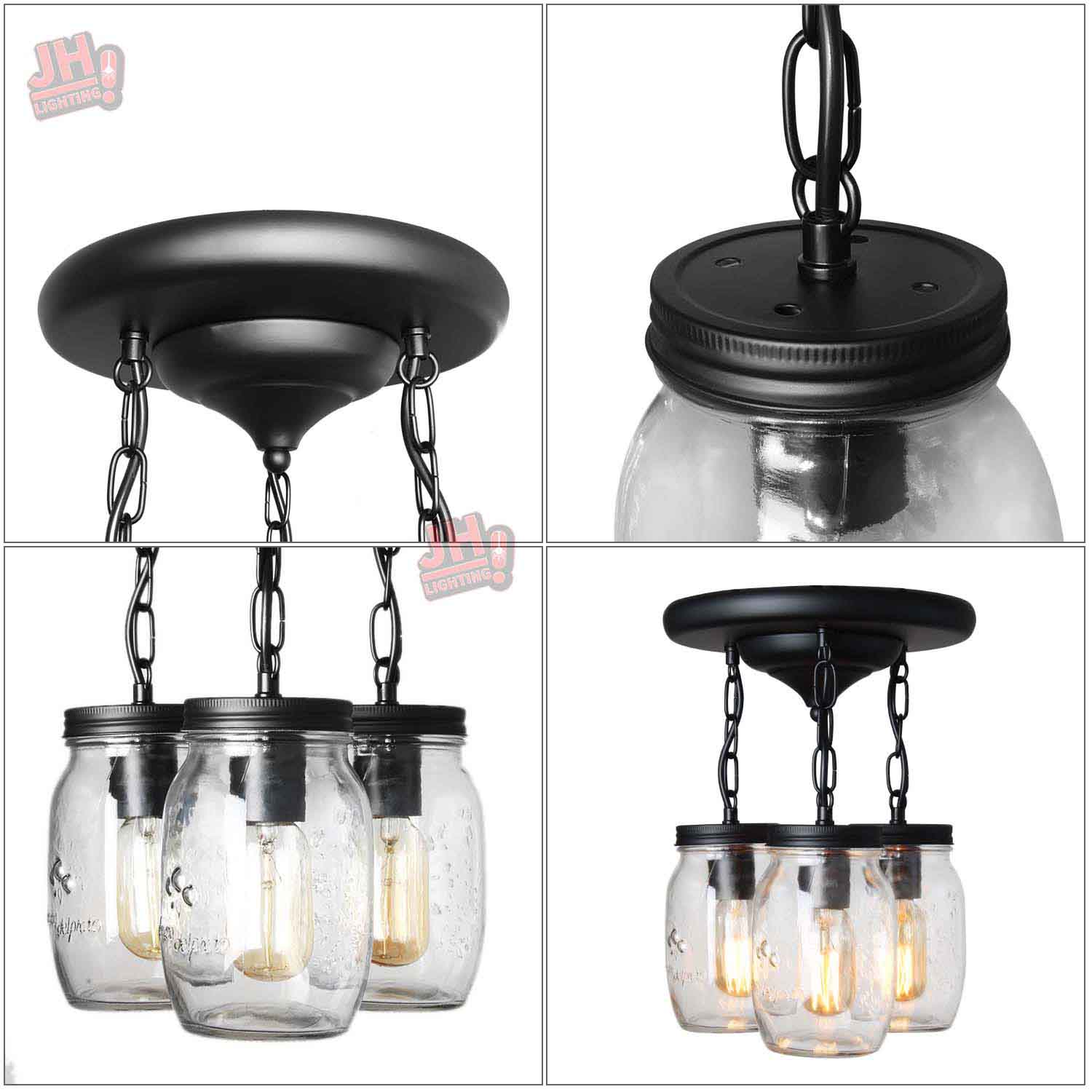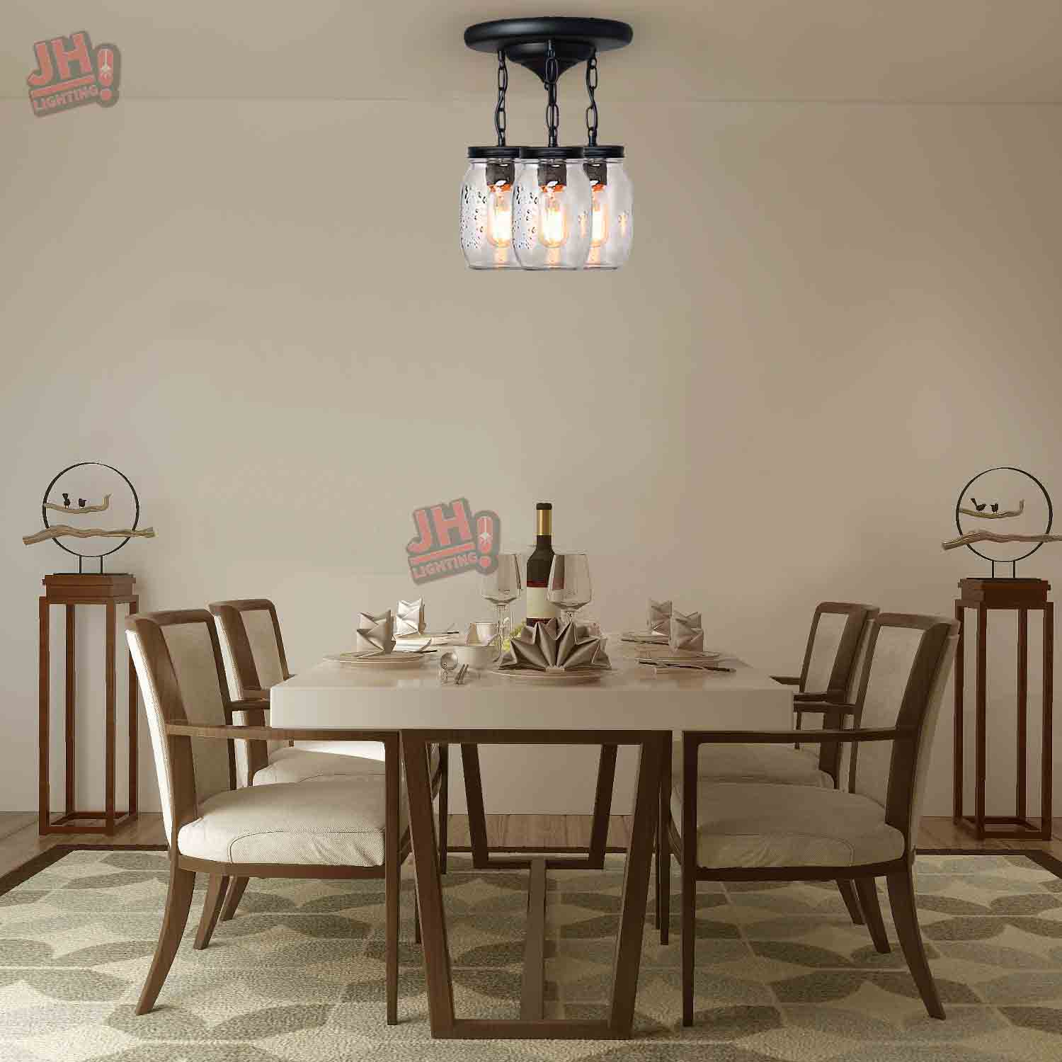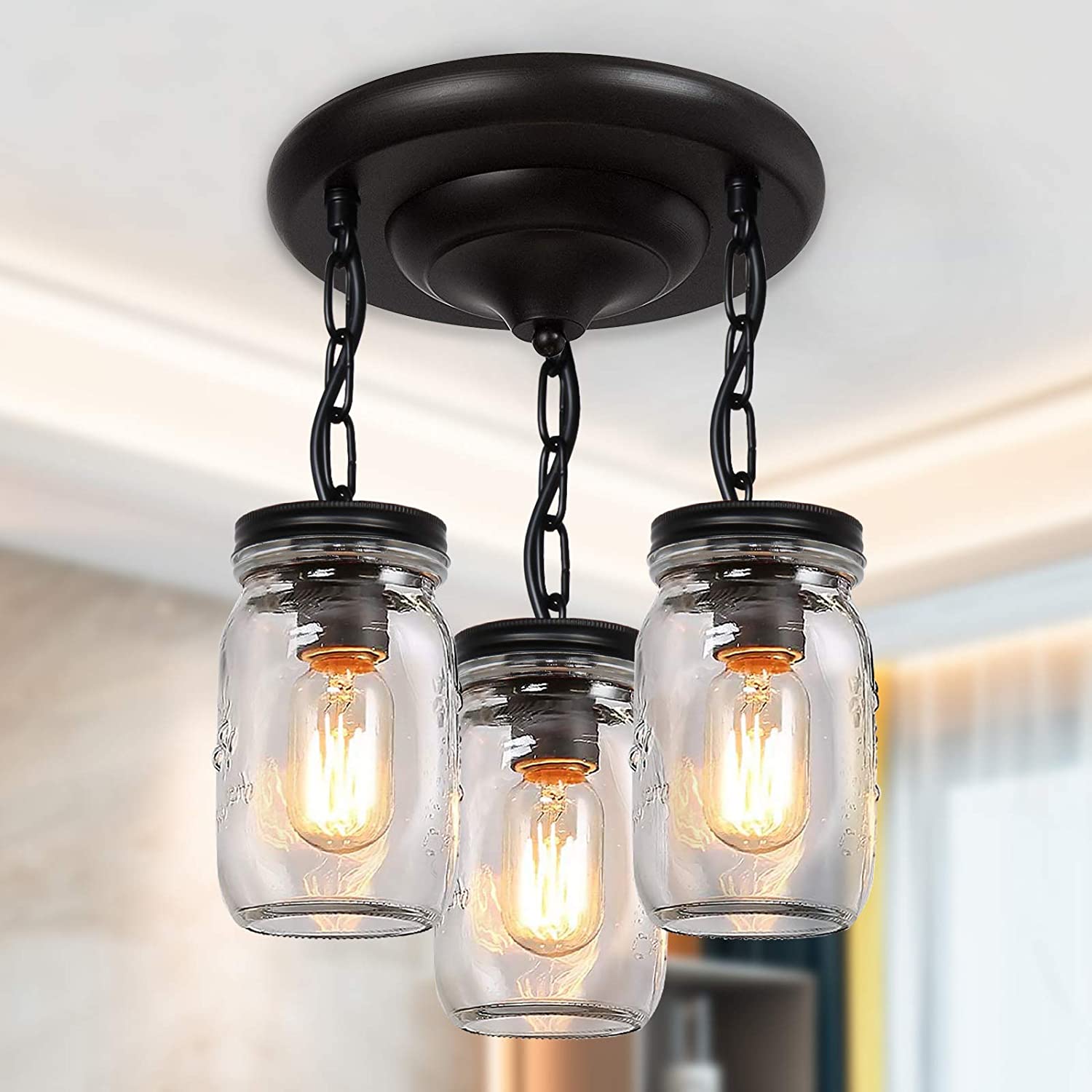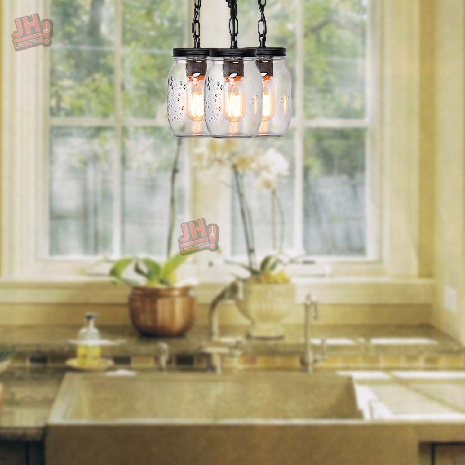💡【Wide Application】- clear quart-size glass jar shades for an eclectic look. Perfect for kitchen counter, bedroom, bathroom, dining room, living room, corridor, staircase, office, loft, cafe, craft room, bar, restaurant, club and more. You can choose where it is installed according to your actual needs.