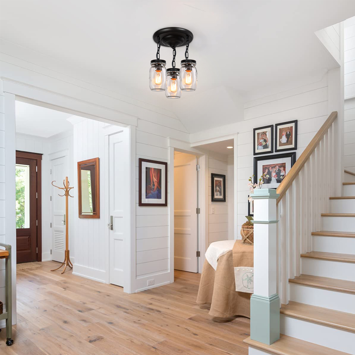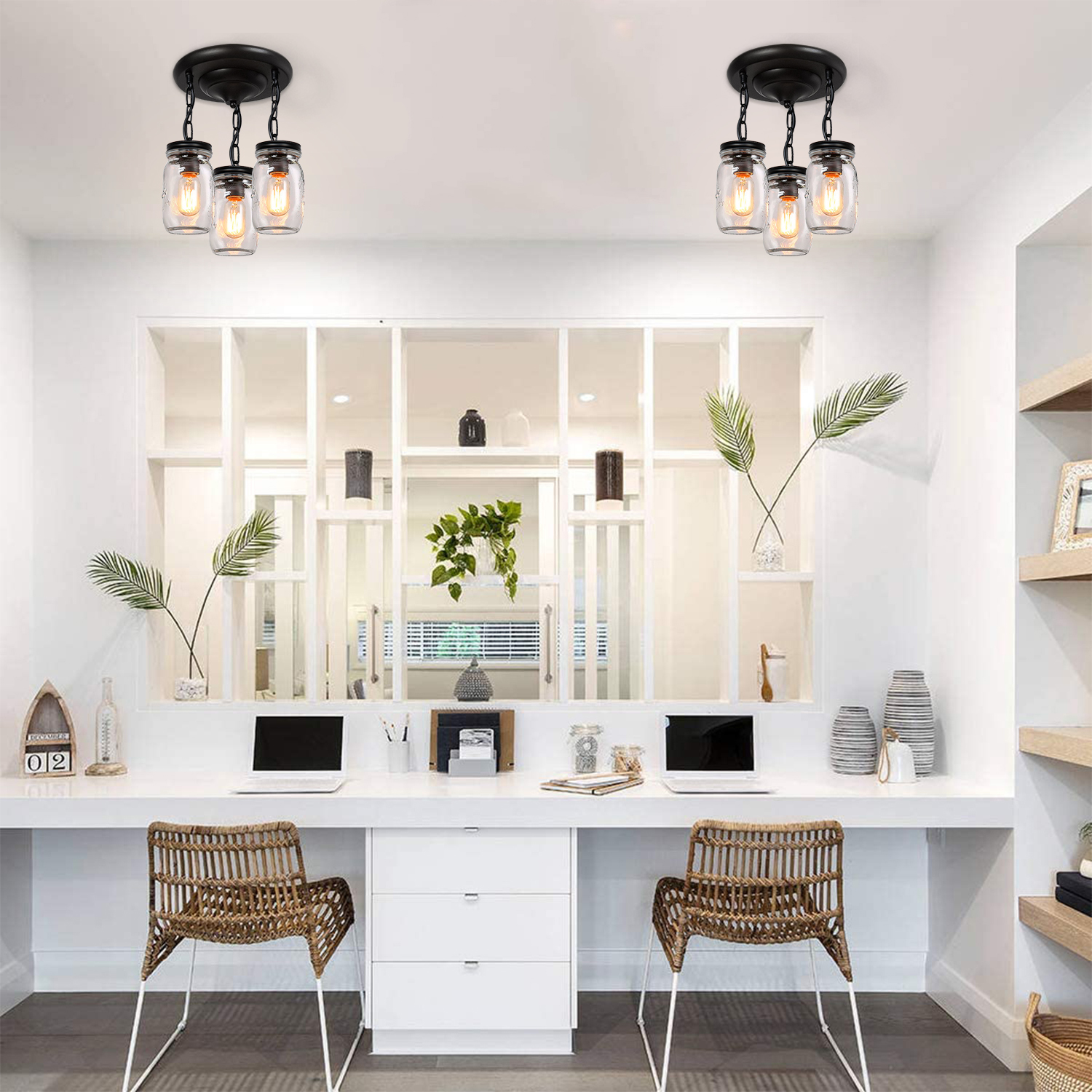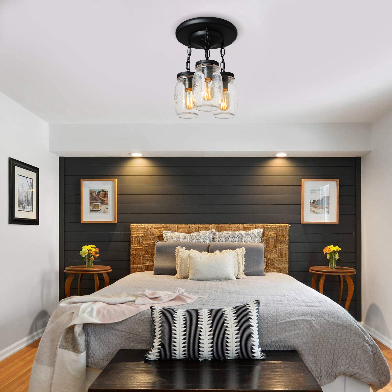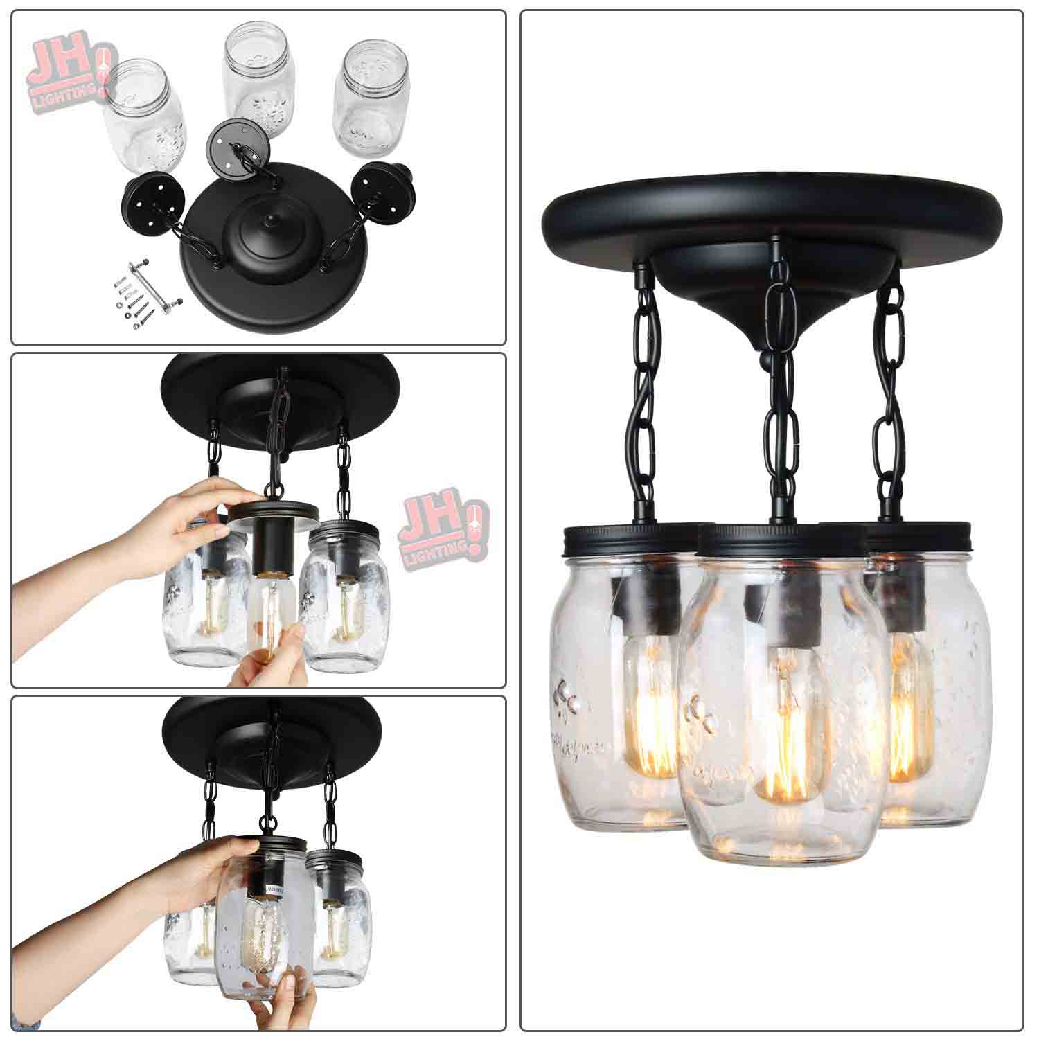 💡【Wide Application】- clear quart-size glass jar shades for an eclectic look. Perfect for kitchen counter, bedroom, bathroom, dining room, living room, corridor, staircase, office, loft, cafe, craft room, bar, restaurant, club and more. You can choose where it is installed according to your actual needs.