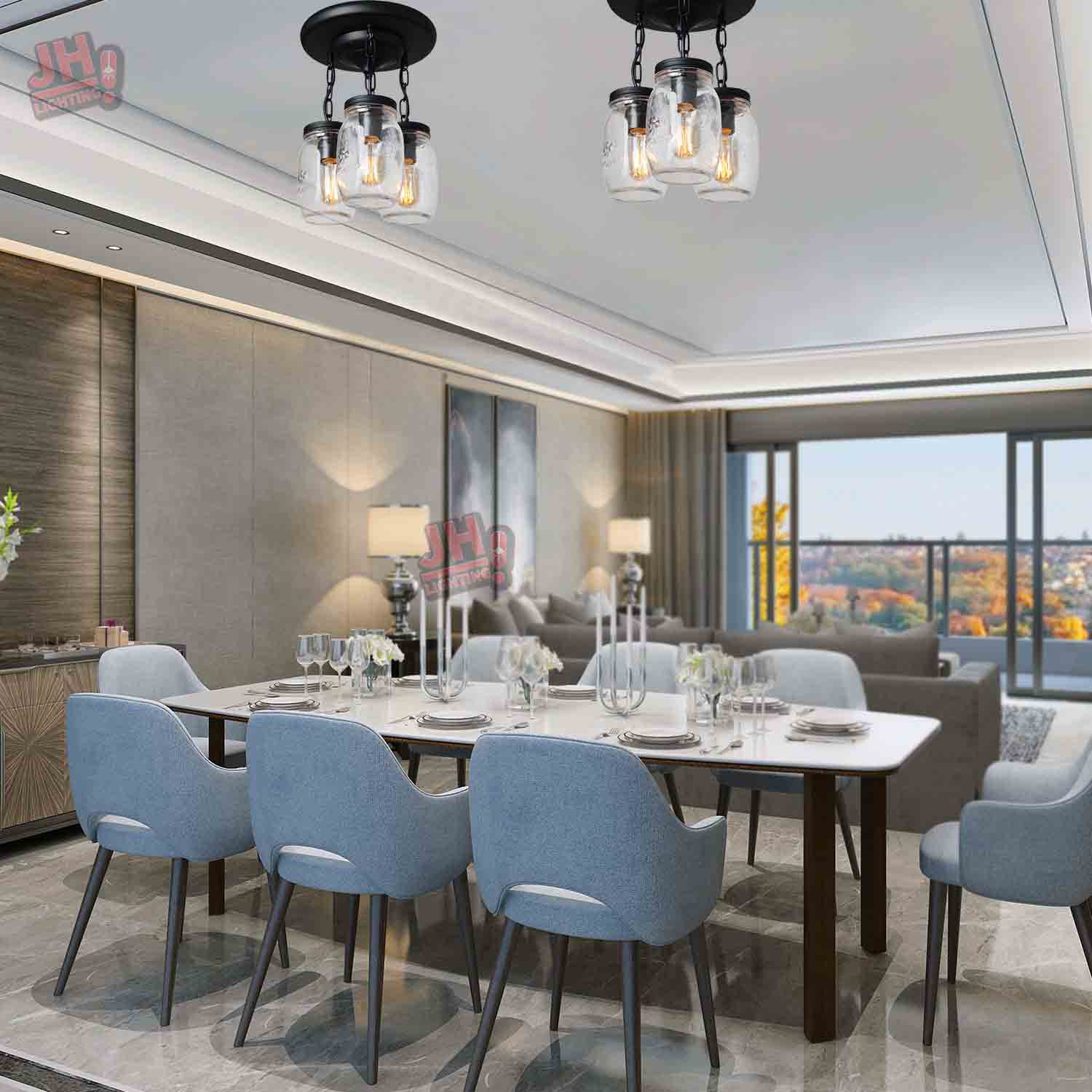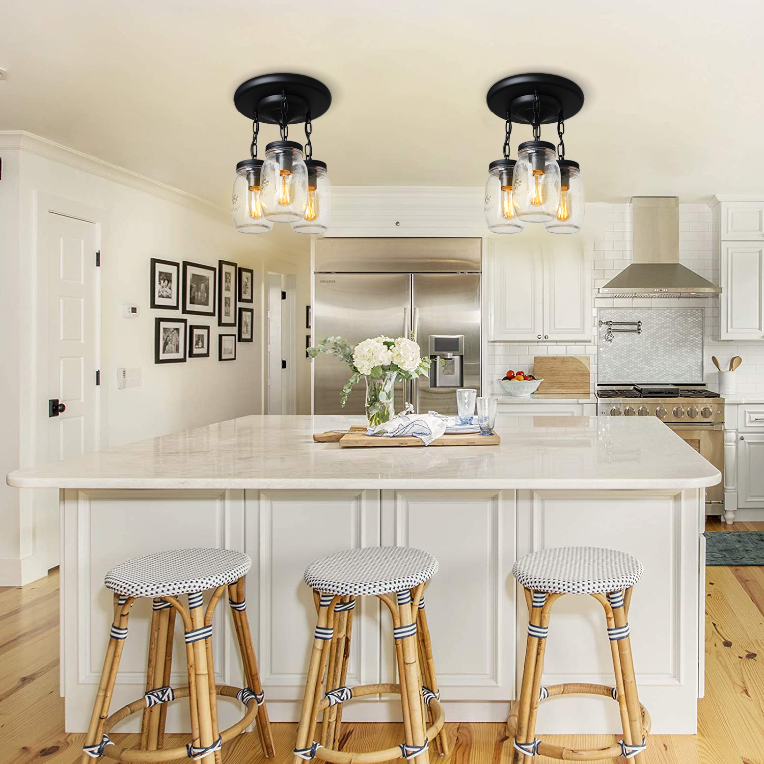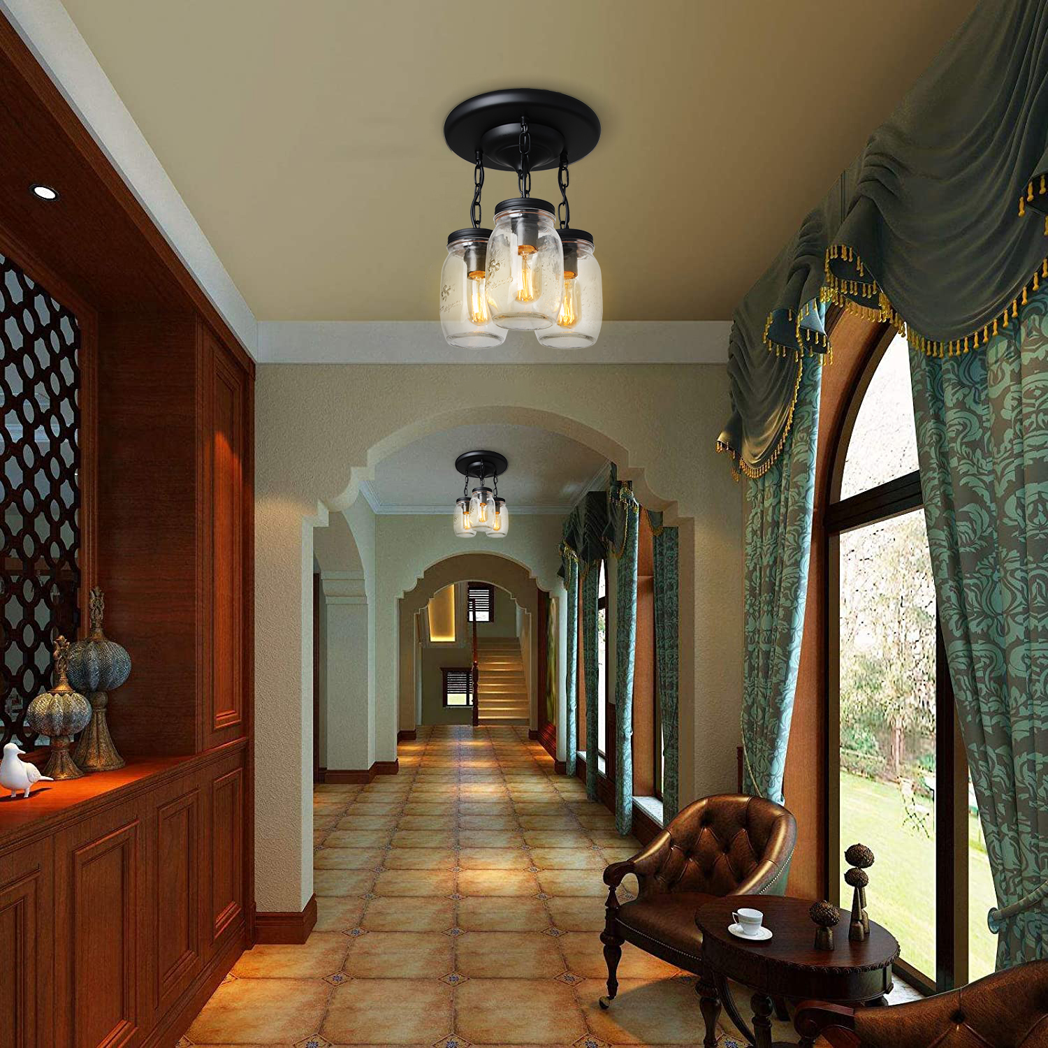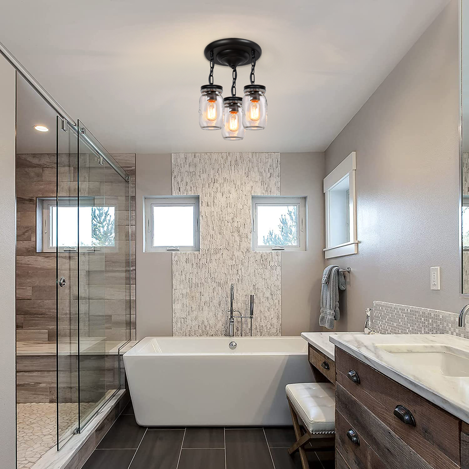 💡【Wide Application】- clear quart-size glass jar shades for an eclectic look. Perfect for kitchen counter, bedroom, bathroom, dining room, living room, corridor, staircase, office, loft, cafe, craft room, bar, restaurant, club and more. You can choose where it is installed according to your actual needs.