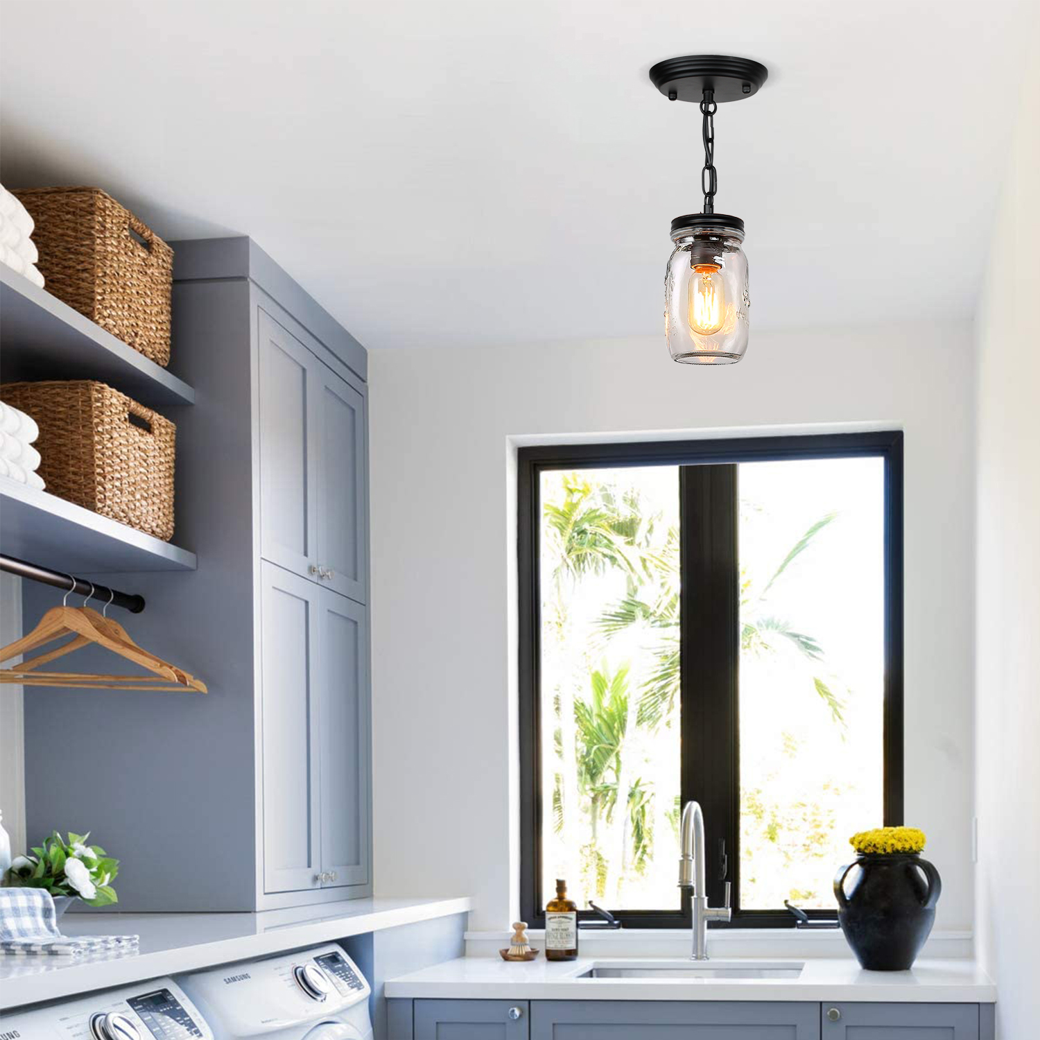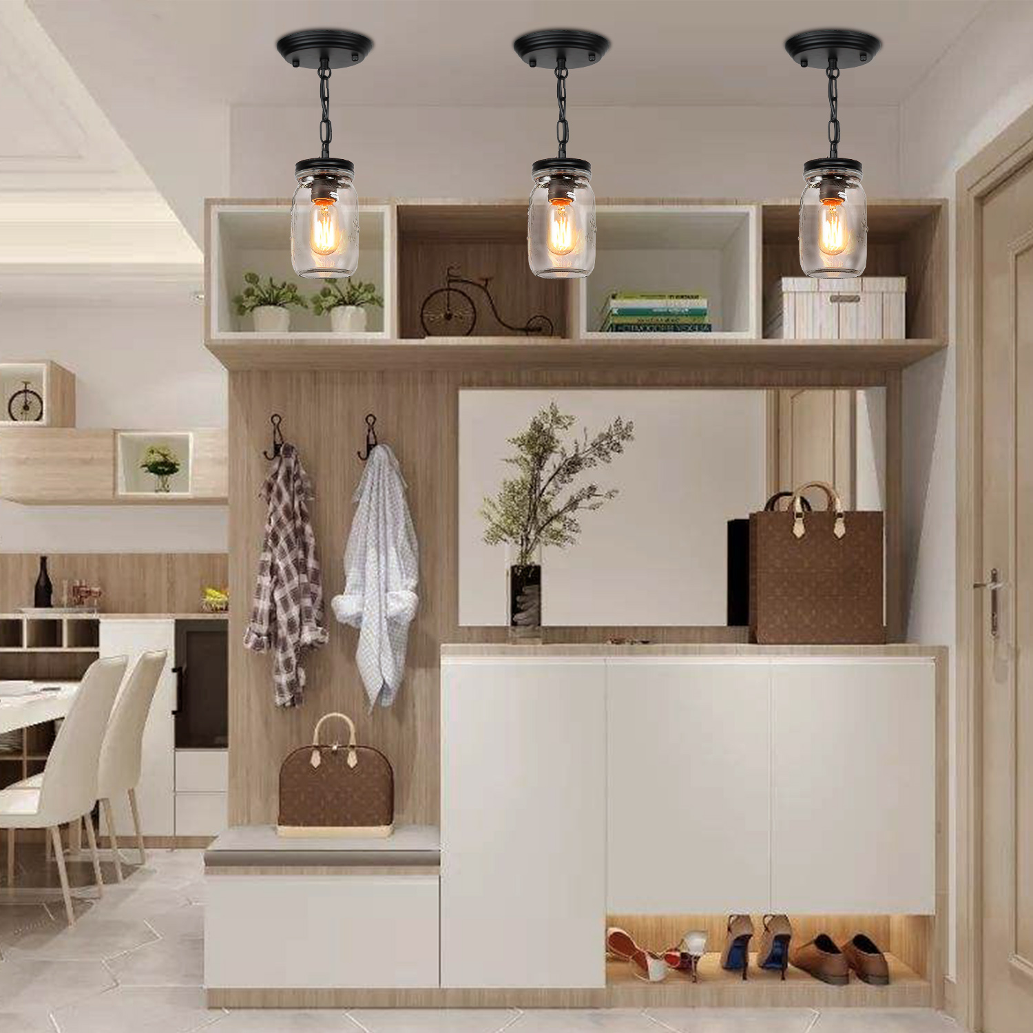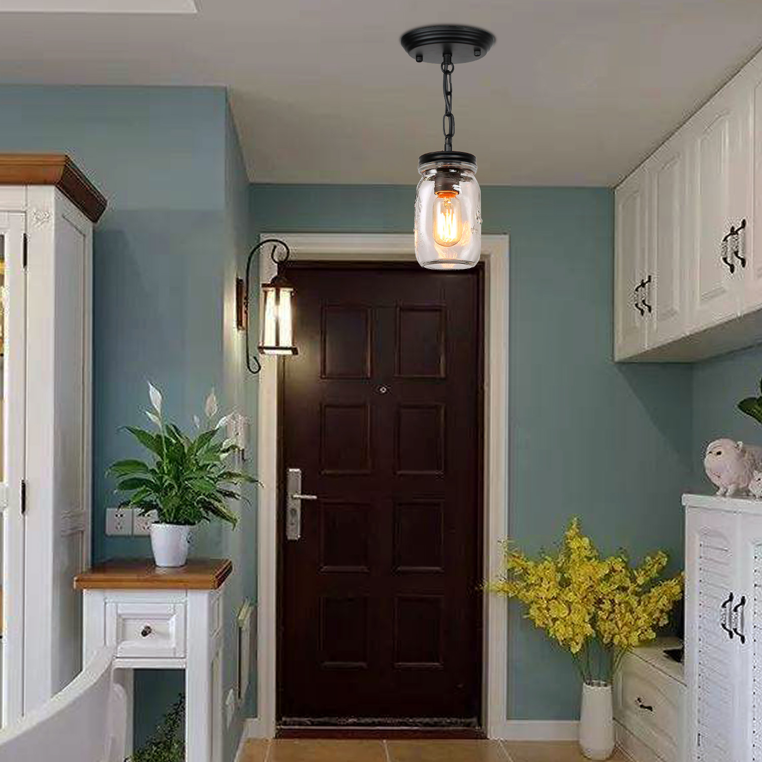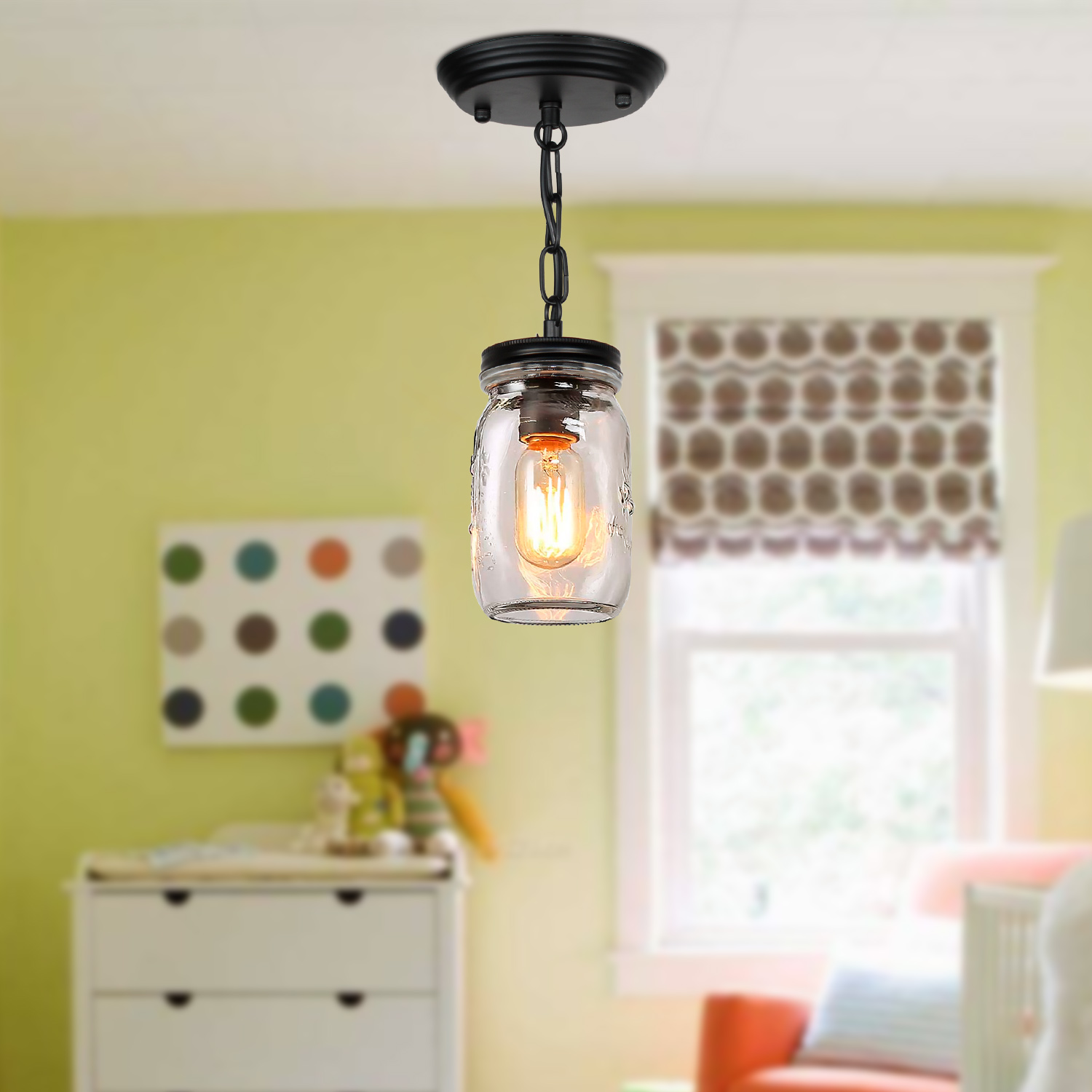 💡【Wide application】- clear quart-size glass jar shades for an eclectic look. Perfect for kitchen counter, bedroom, bathroom, dining room, living room, corridor, staircase, office, loft, cafe, craft room, bar, restaurant, club and more. You can choose where it is installed according to your actual needs.