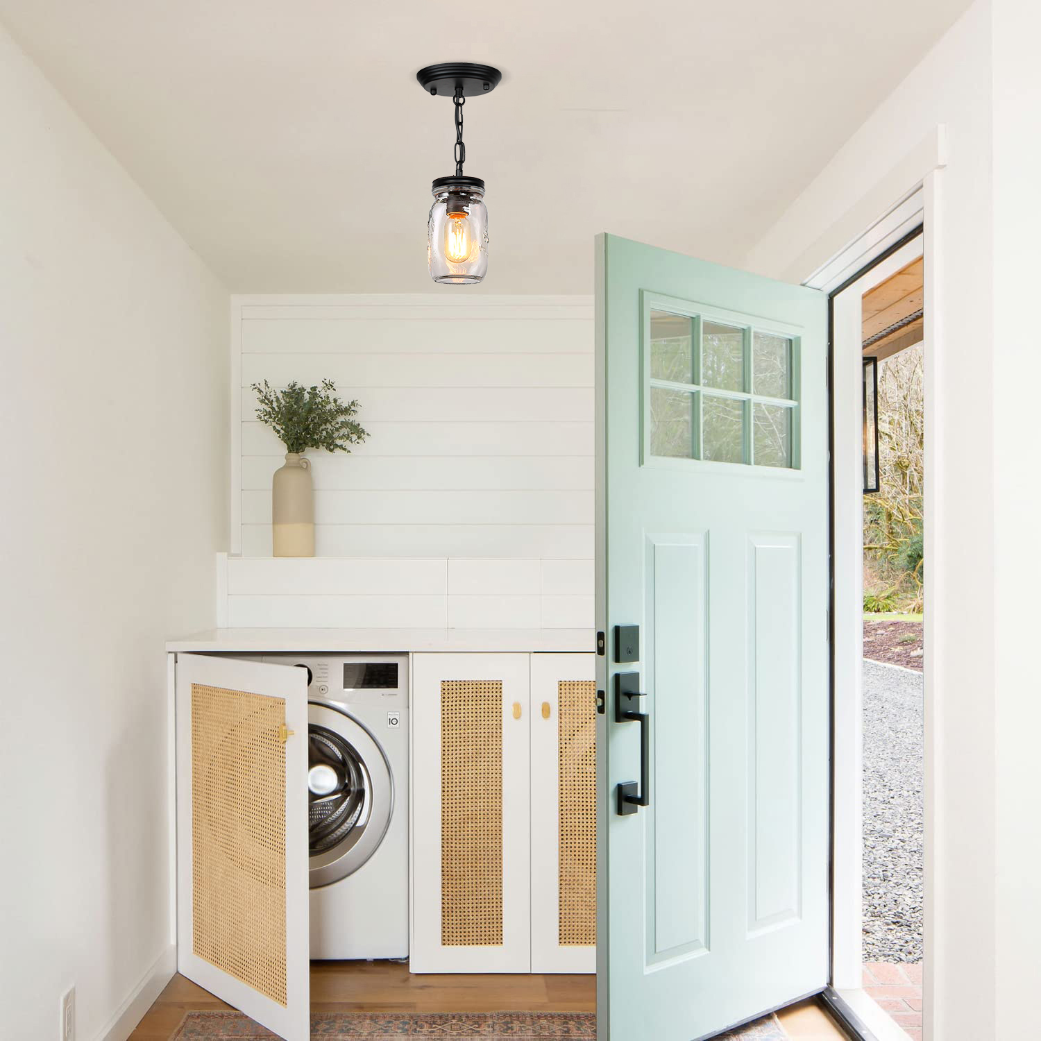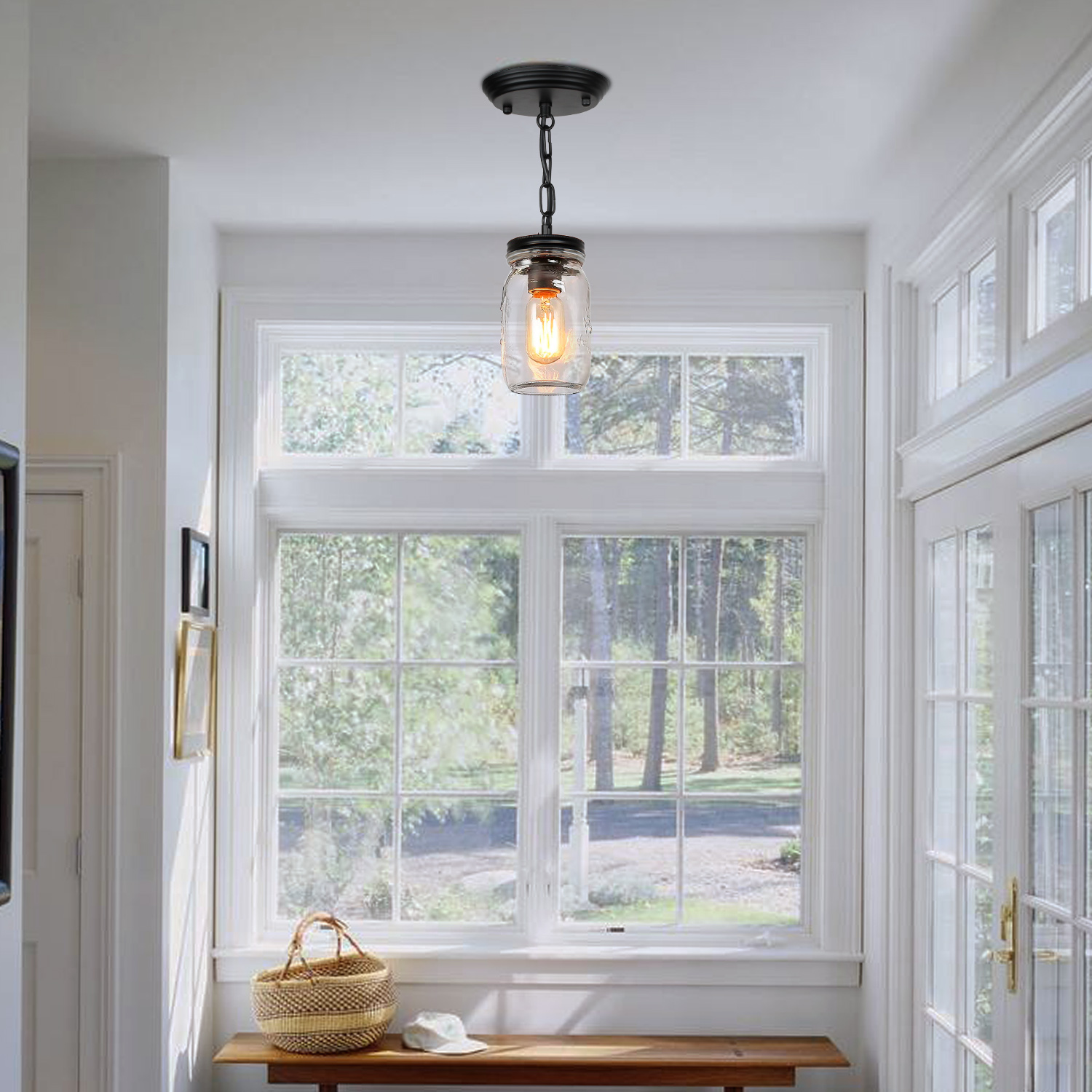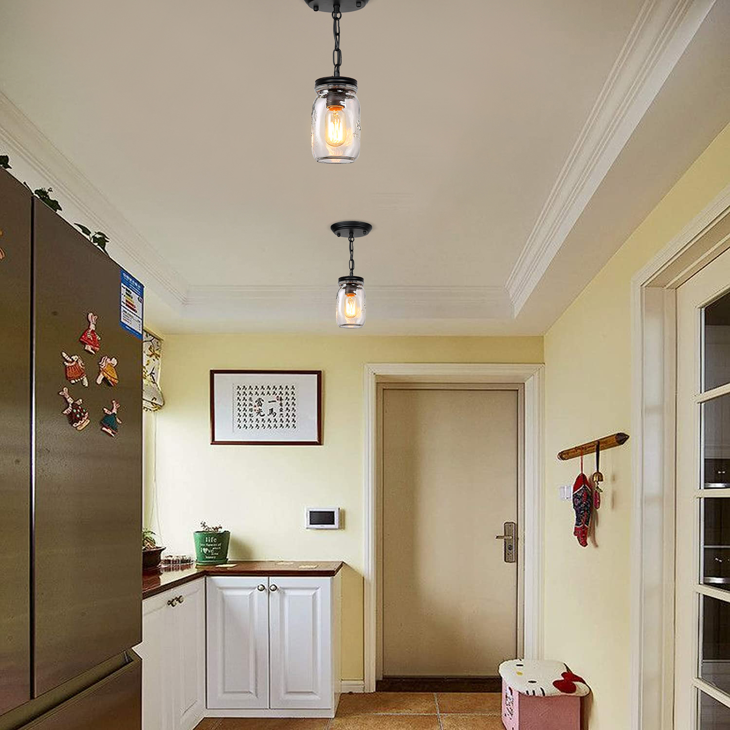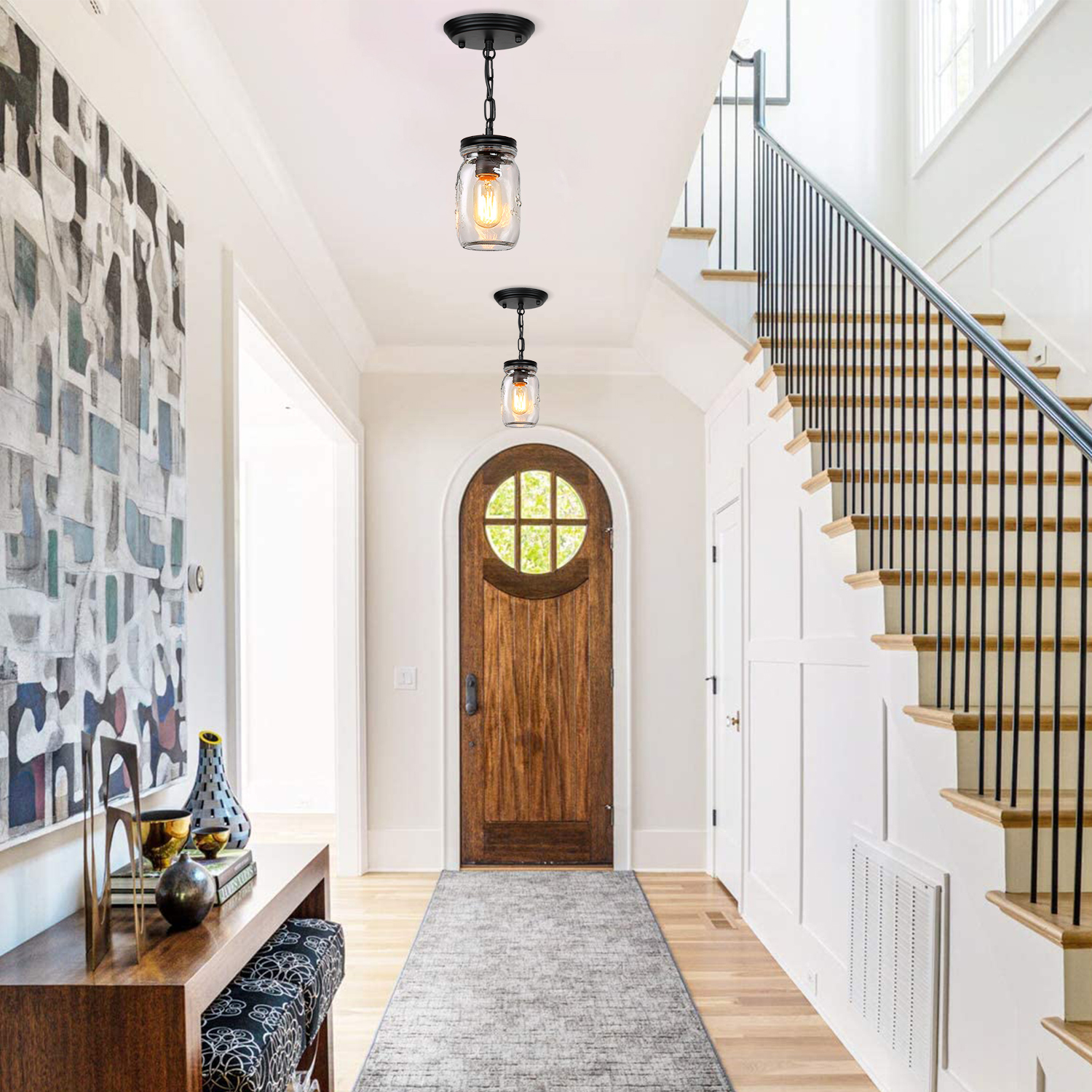💡【Wide application】- clear quart-size glass jar shades for an eclectic look. Perfect for kitchen counter, bedroom, bathroom, dining room, living room, corridor, staircase, office, loft, cafe, craft room, bar, restaurant, club and more. You can choose where it is installed according to your actual needs.