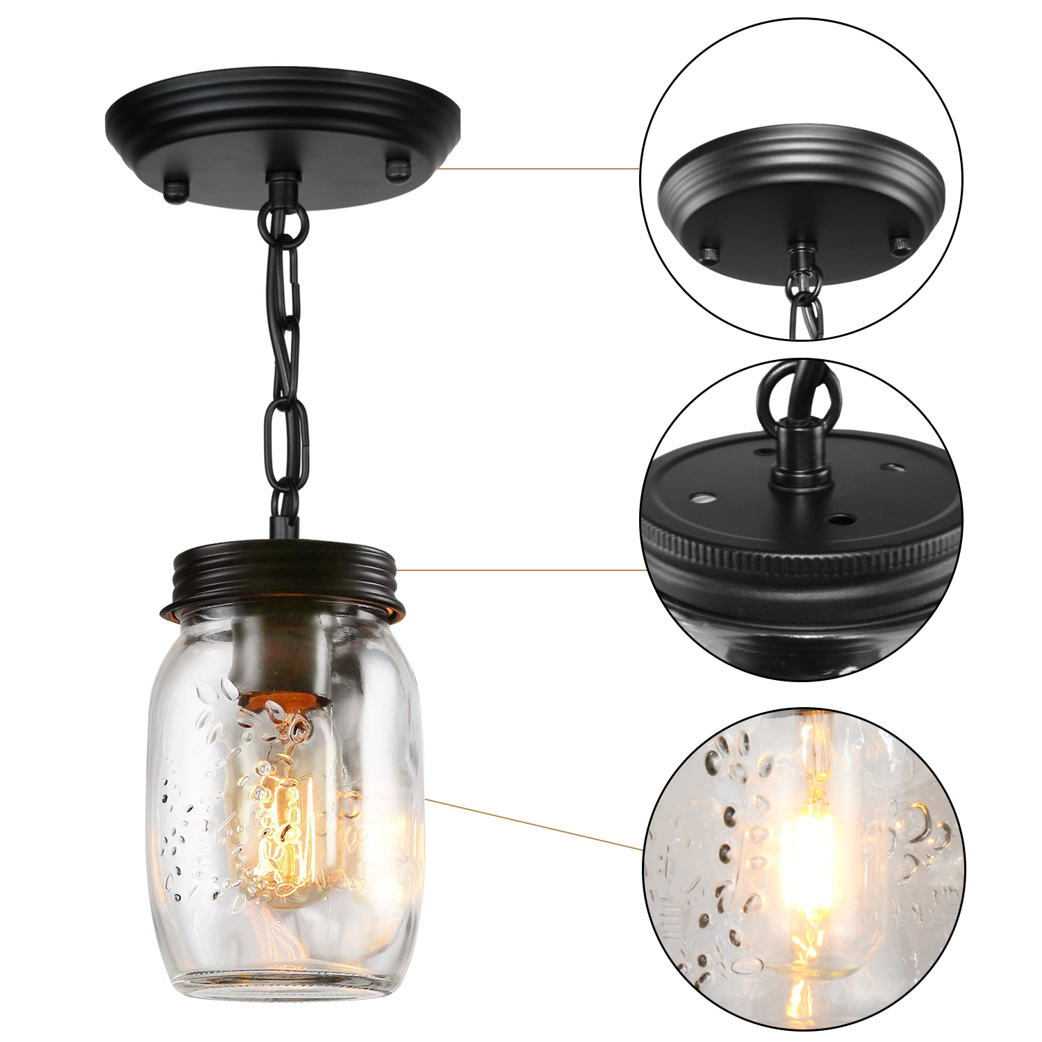 💡【After-sale Guarantee】 - If you have any problem for mason jar pendant light, please feel free to contact us customer service team. We will try our best to help you solve the problem.