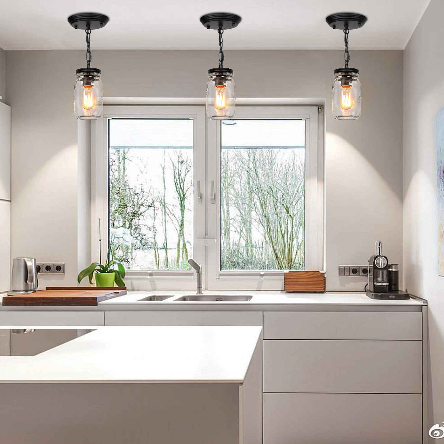 Modern Glass Mason Jar Kitchen Island Pendant Light Indoor Ceiling Light Fixture
