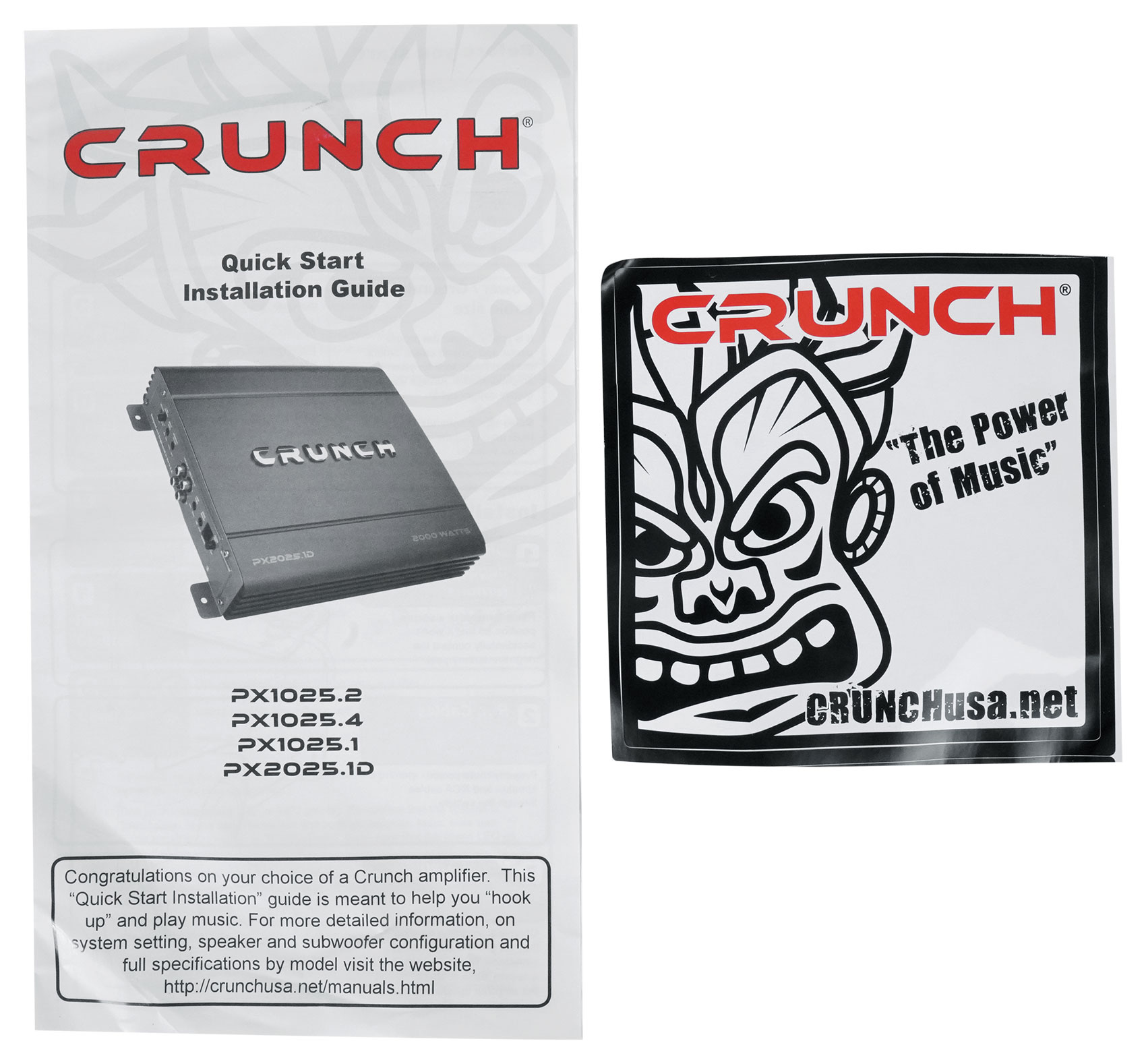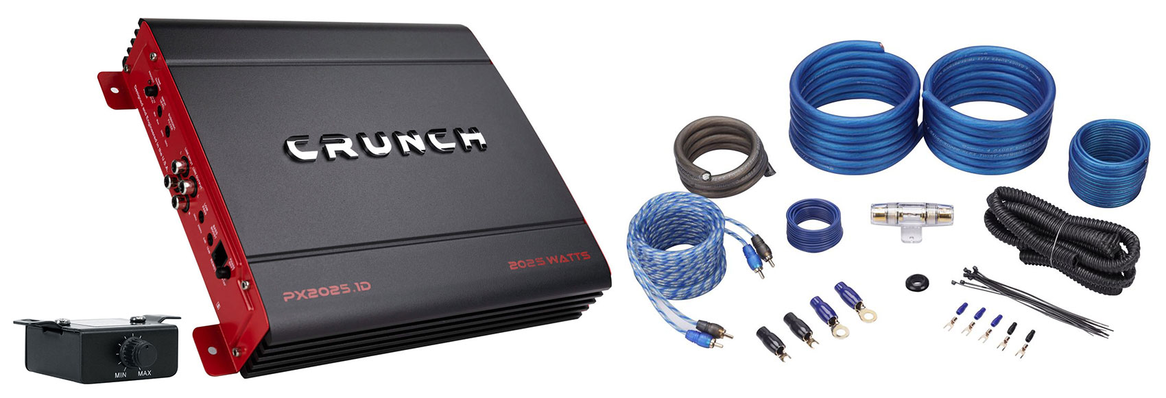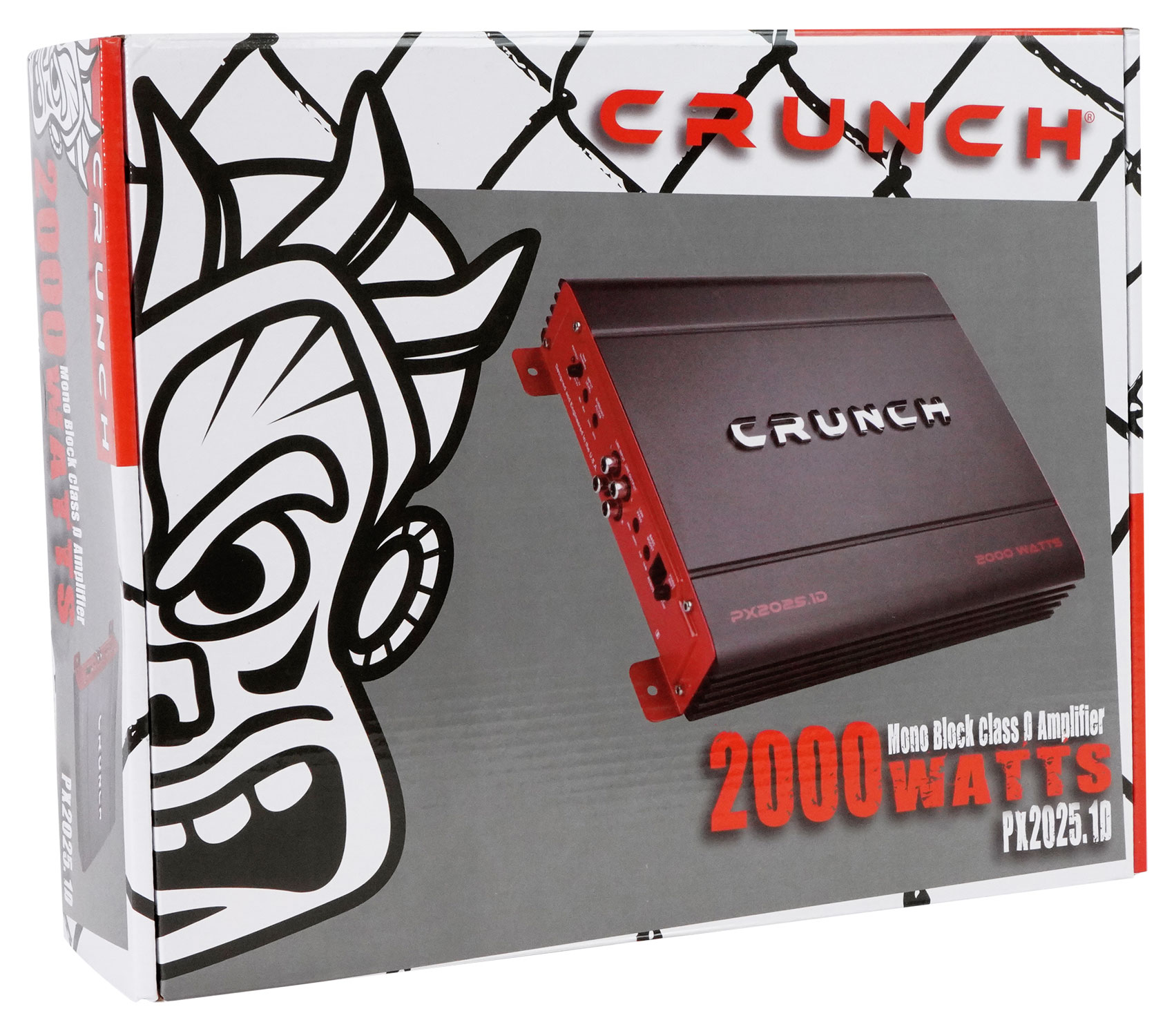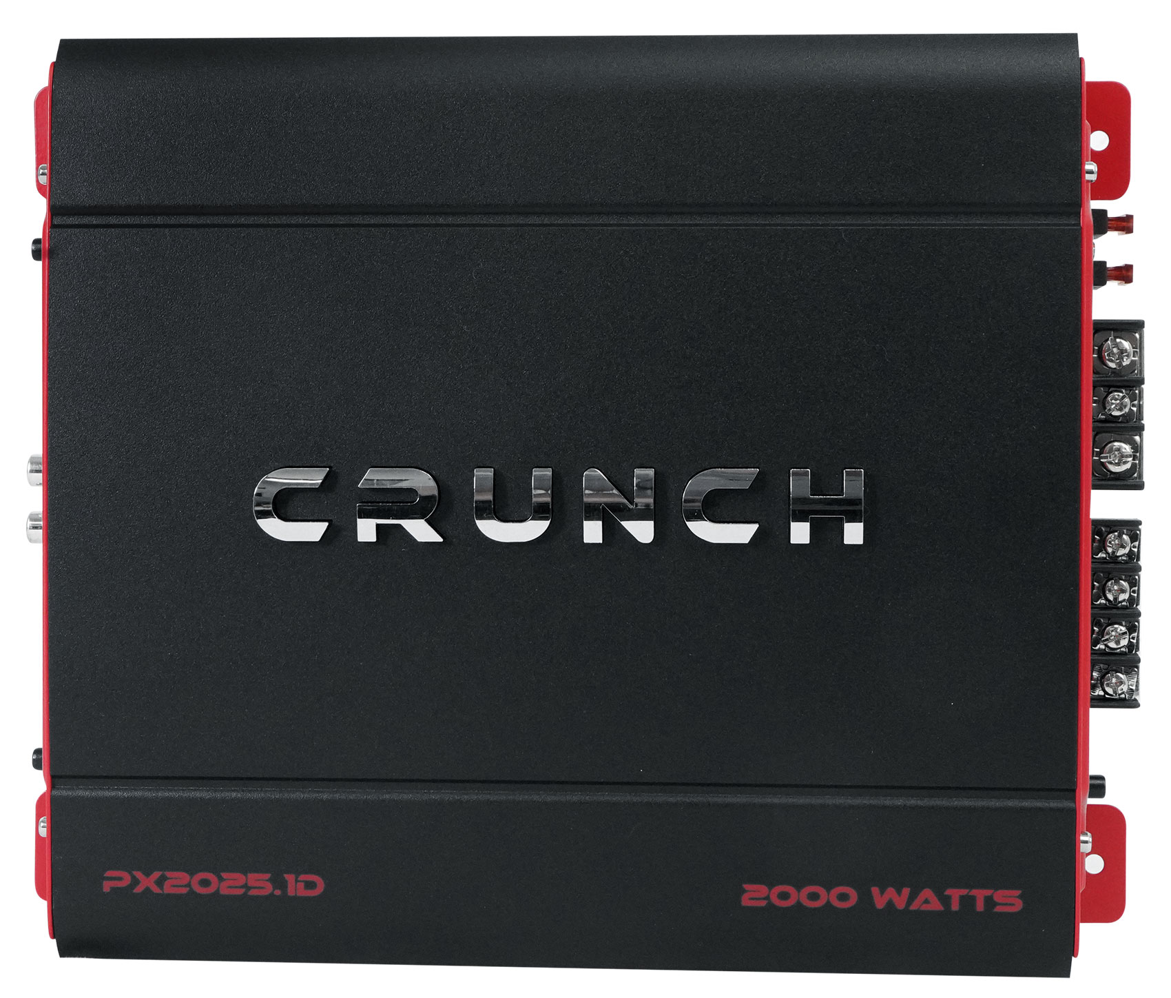 Crunch Power X with SPEED-FET Output, QTD Technology in a D Class 1 ohm stable amplifier delivers 2000 watts to subwoofers and features include built-in electronic crossovers and includes bass remote.