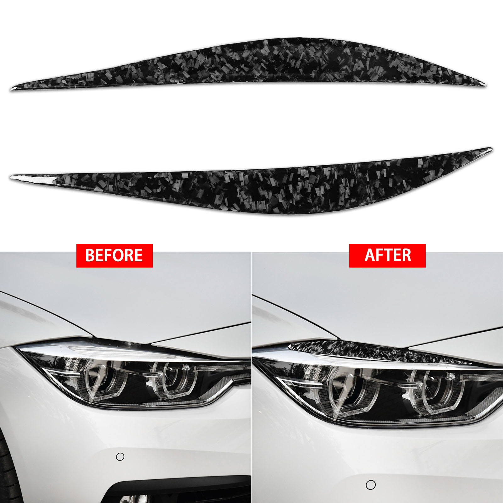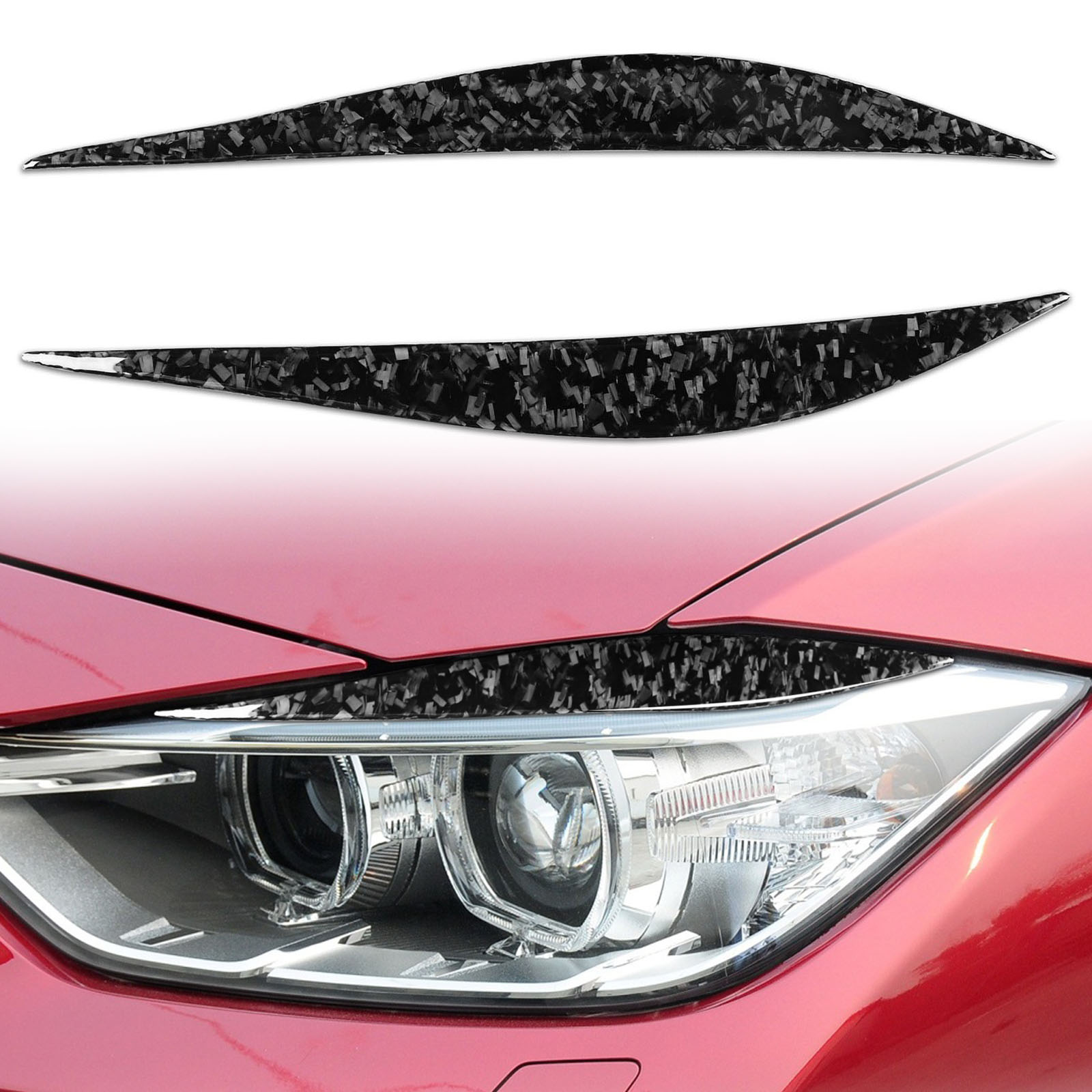 2pcs/Set Forged Carbon Fiber Front Headlight Eyebrow Eyelid Cover Trim